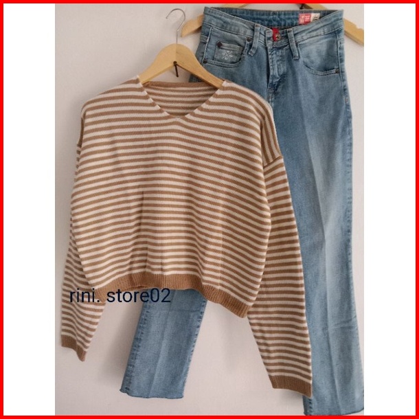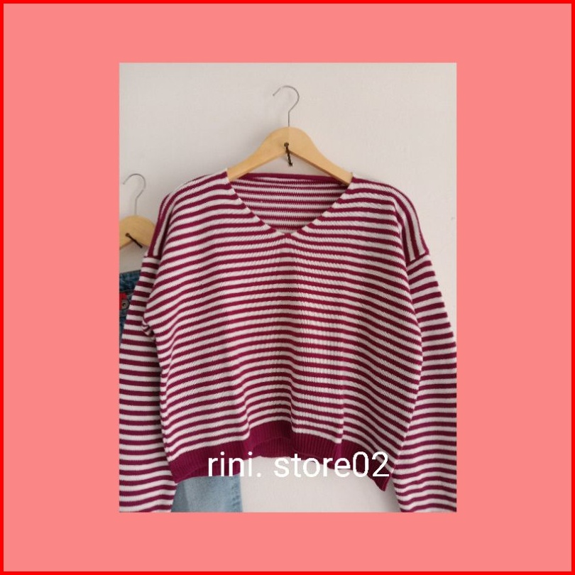 Atasan Rajut V Neck Sweater Lidya Blouse Wanita Ori