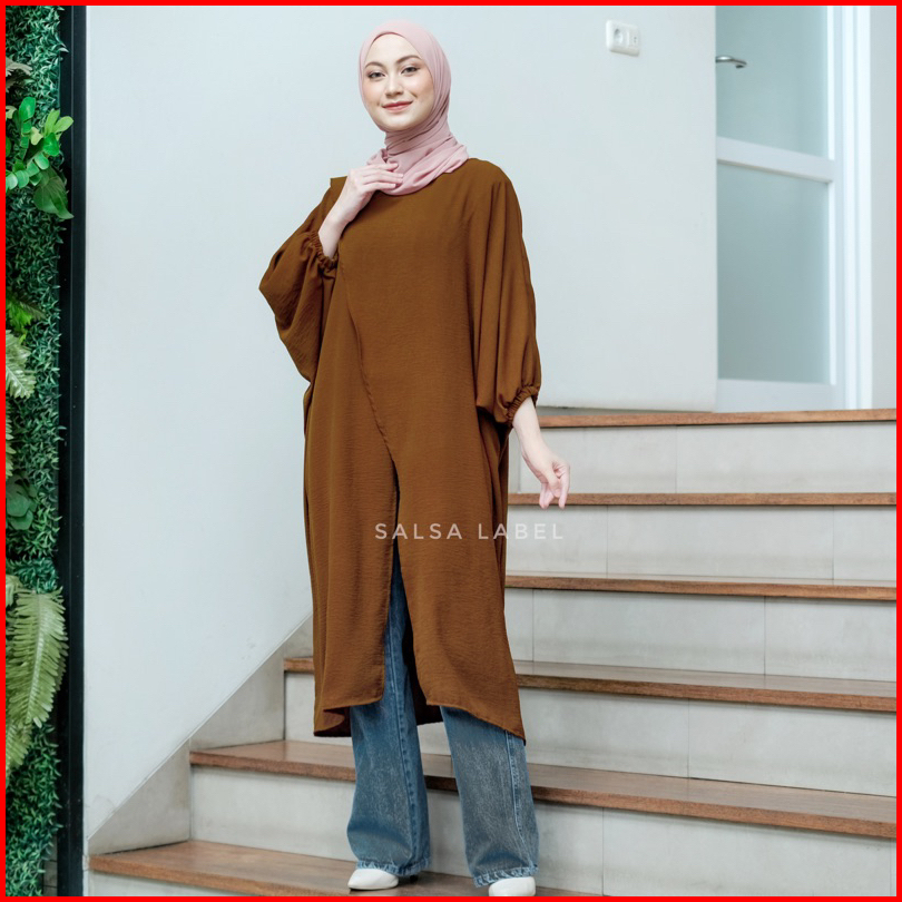 Mecca Long Tunik Semi Kaftan Crinkle Airflow Atasan Wanita