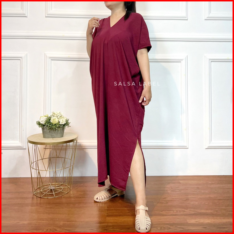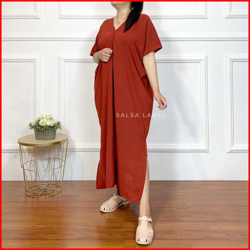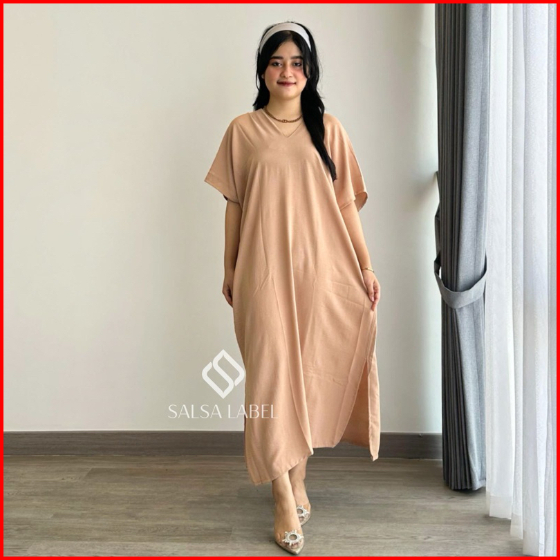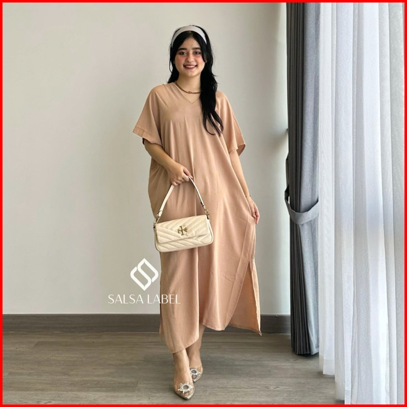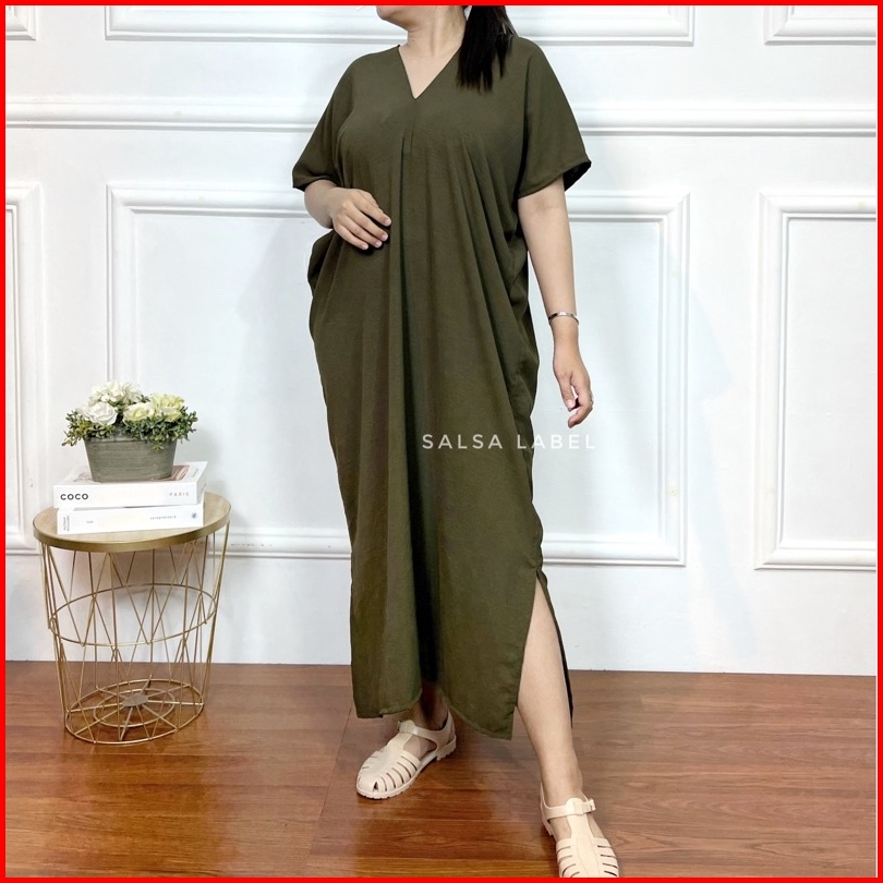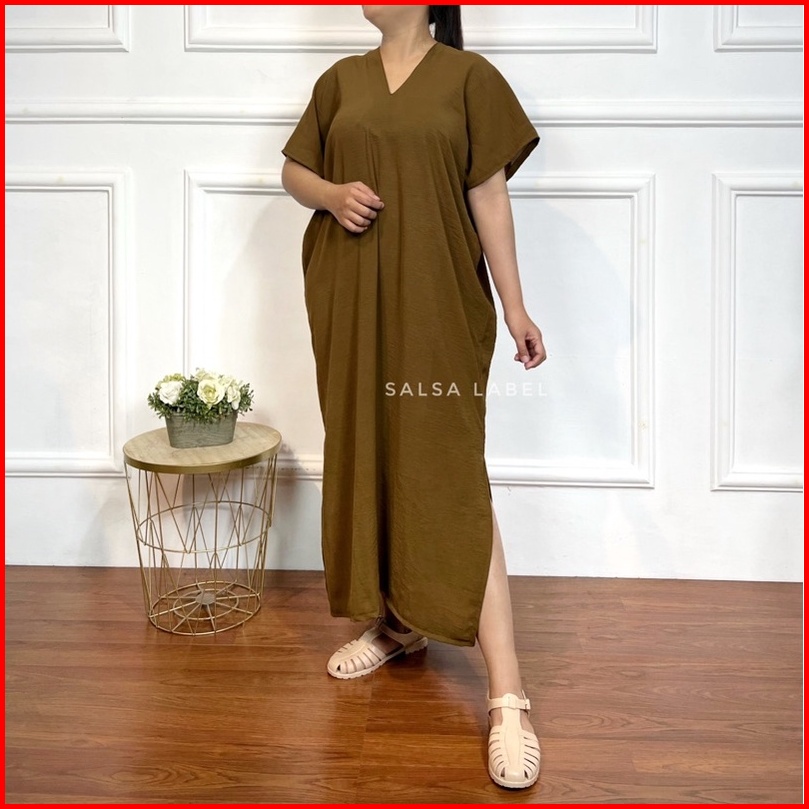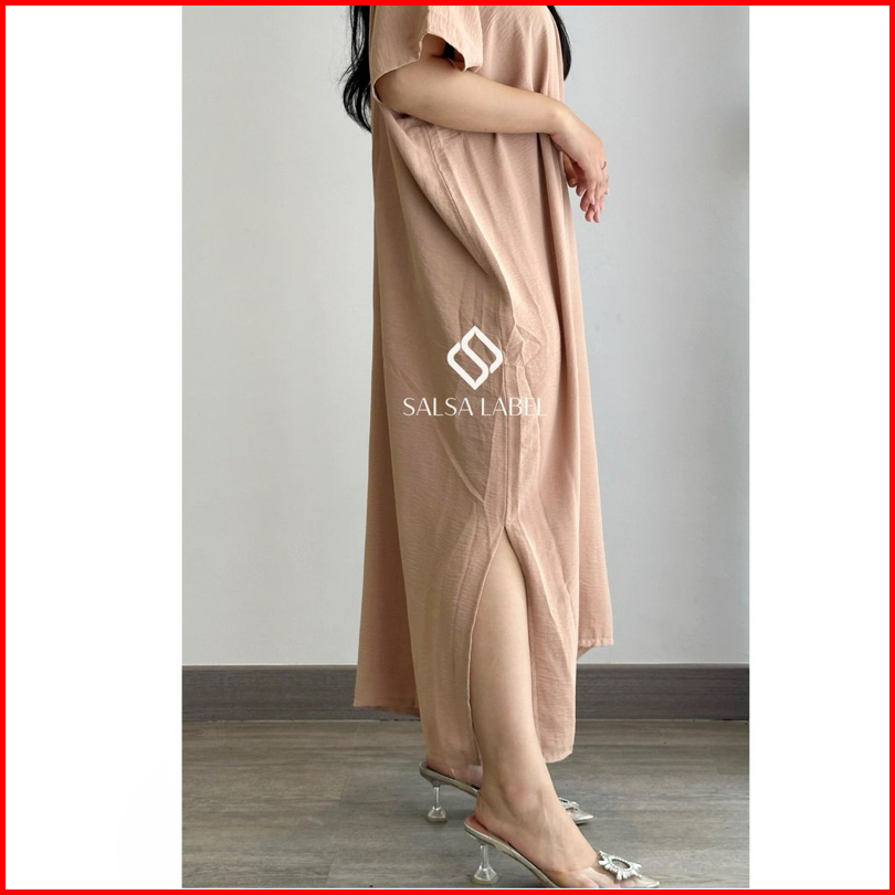 Alody Dress Long Panjang V-neck Airflow Crinkle Daster Long Panjang Kaftan