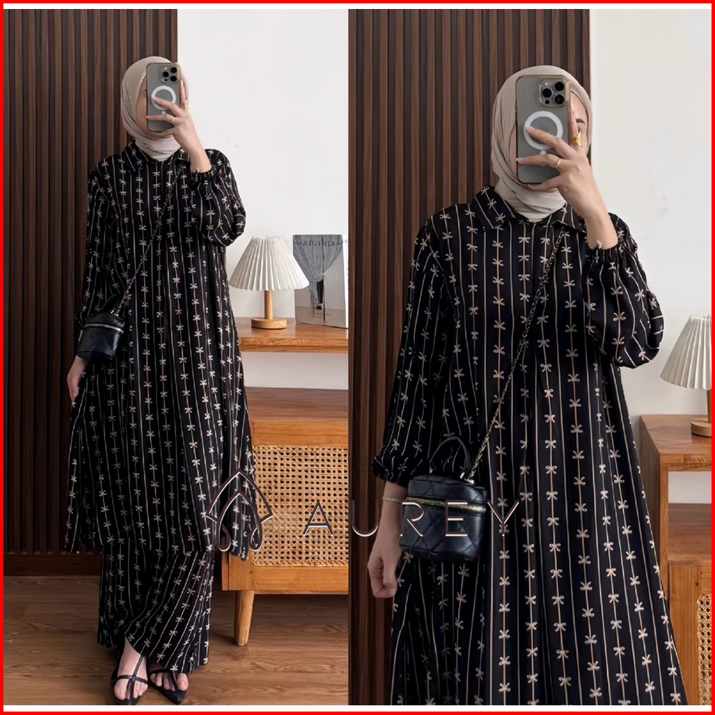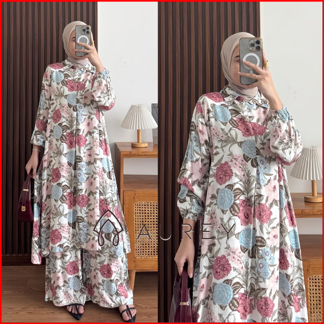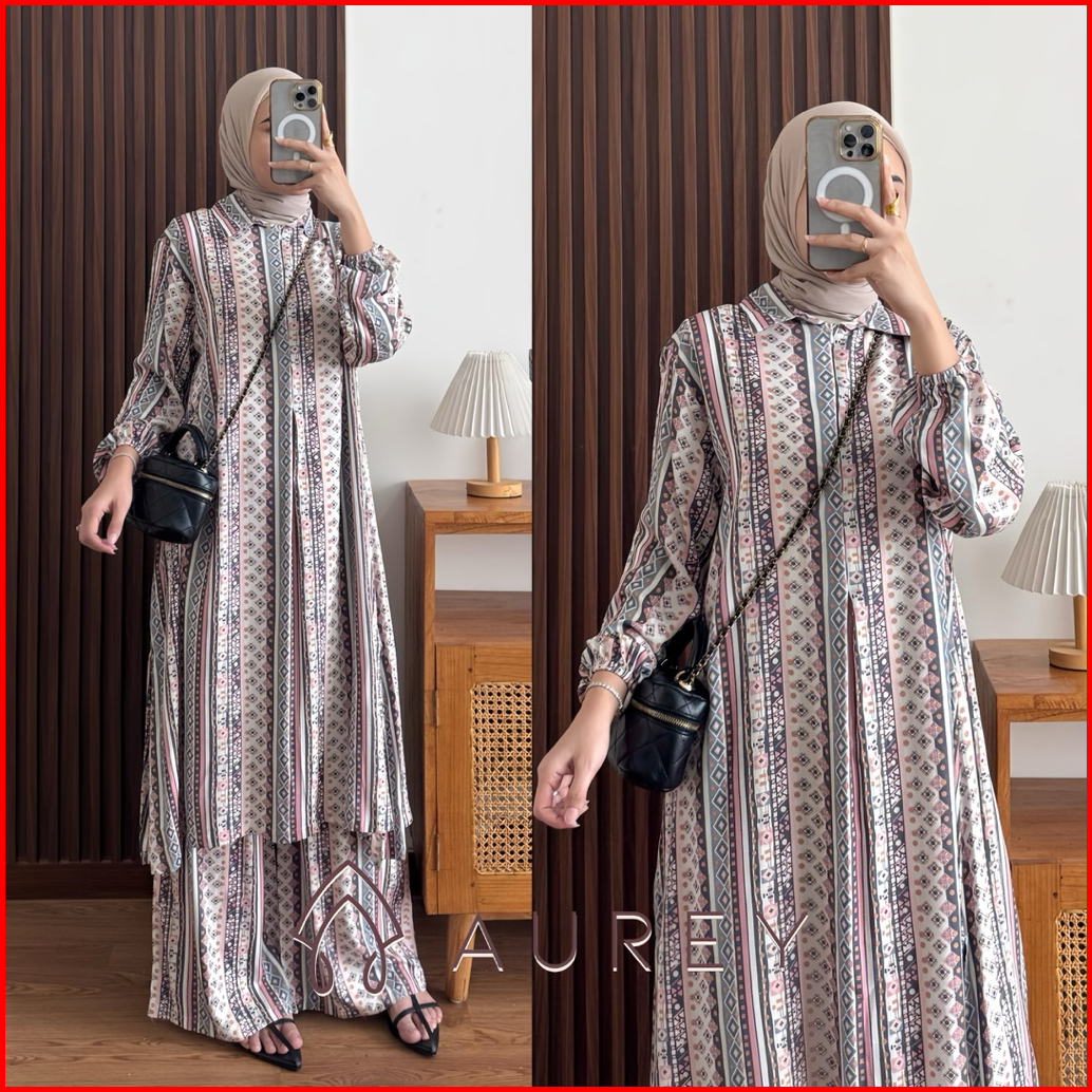 Aurey - Oneset Long Tunik Wanita Tiora Setelan Tunik Panjang Wanita Rayon Setelan Celana Wanita Busui Friendly