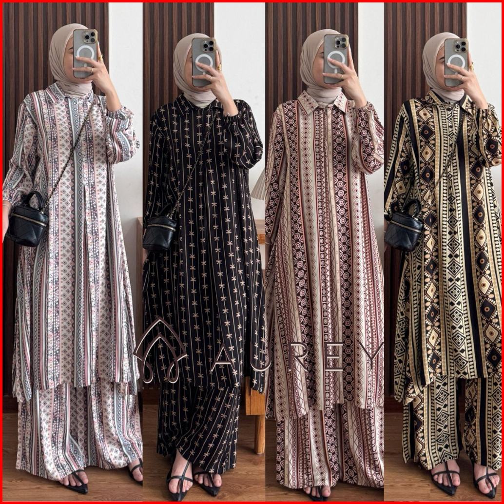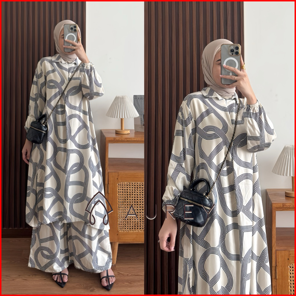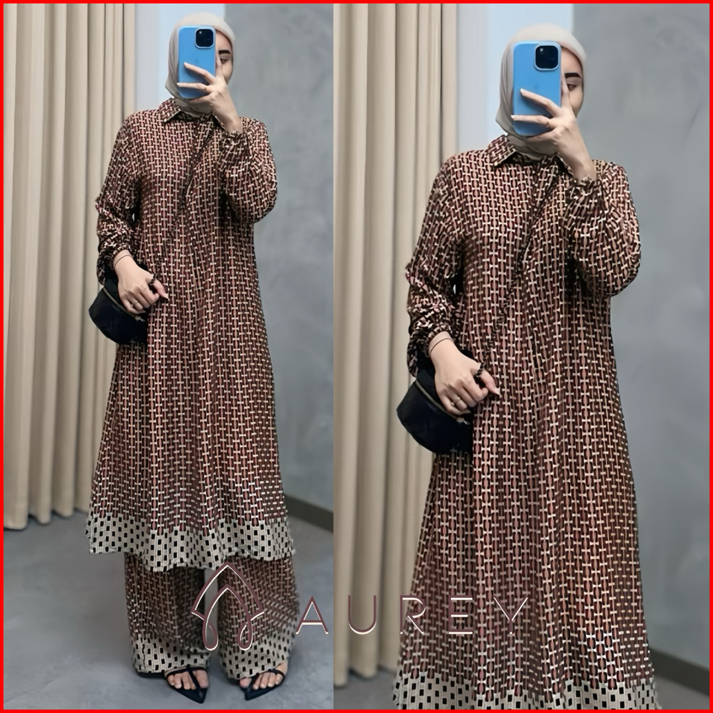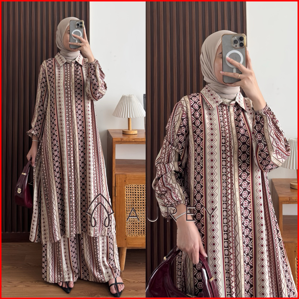 Aurey - Oneset Long Tunik Wanita Tiora Setelan Tunik Panjang Wanita Rayon Setelan Celana Wanita Busui Friendly