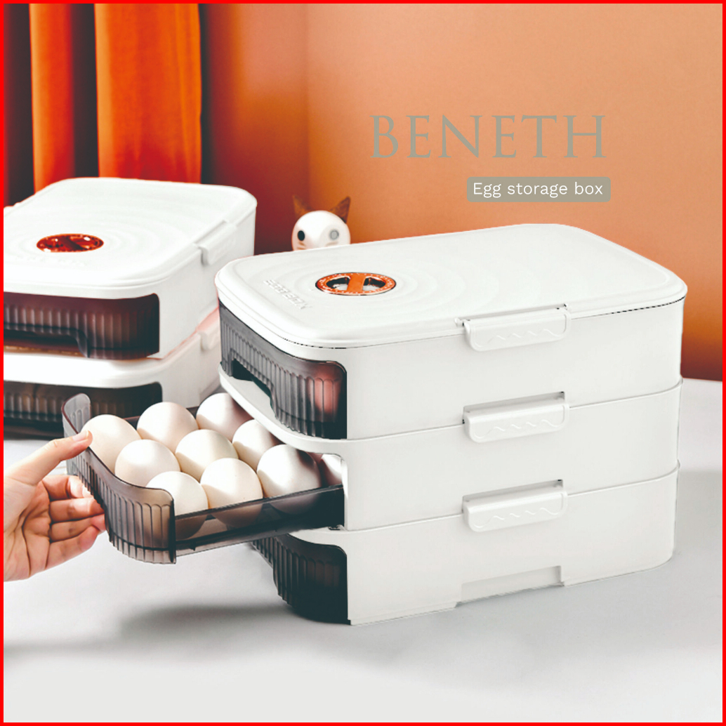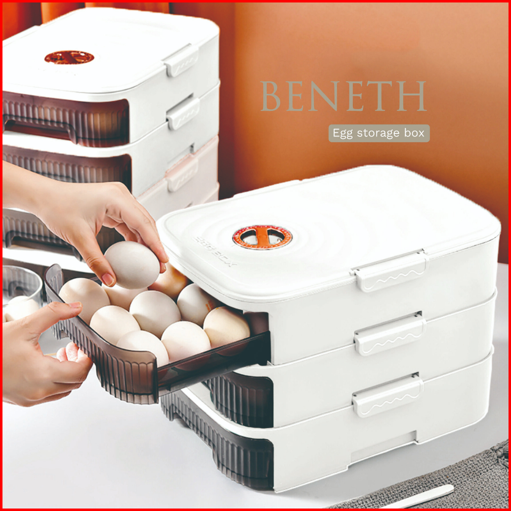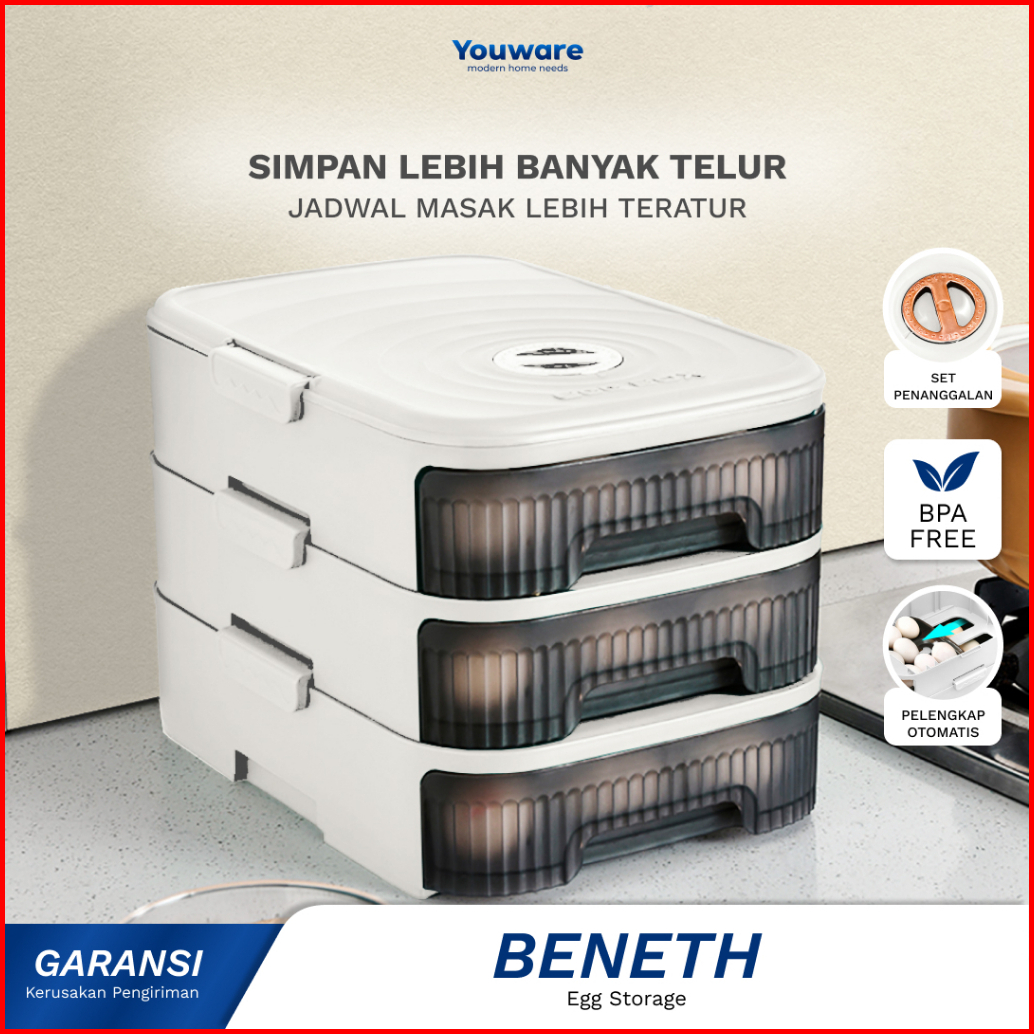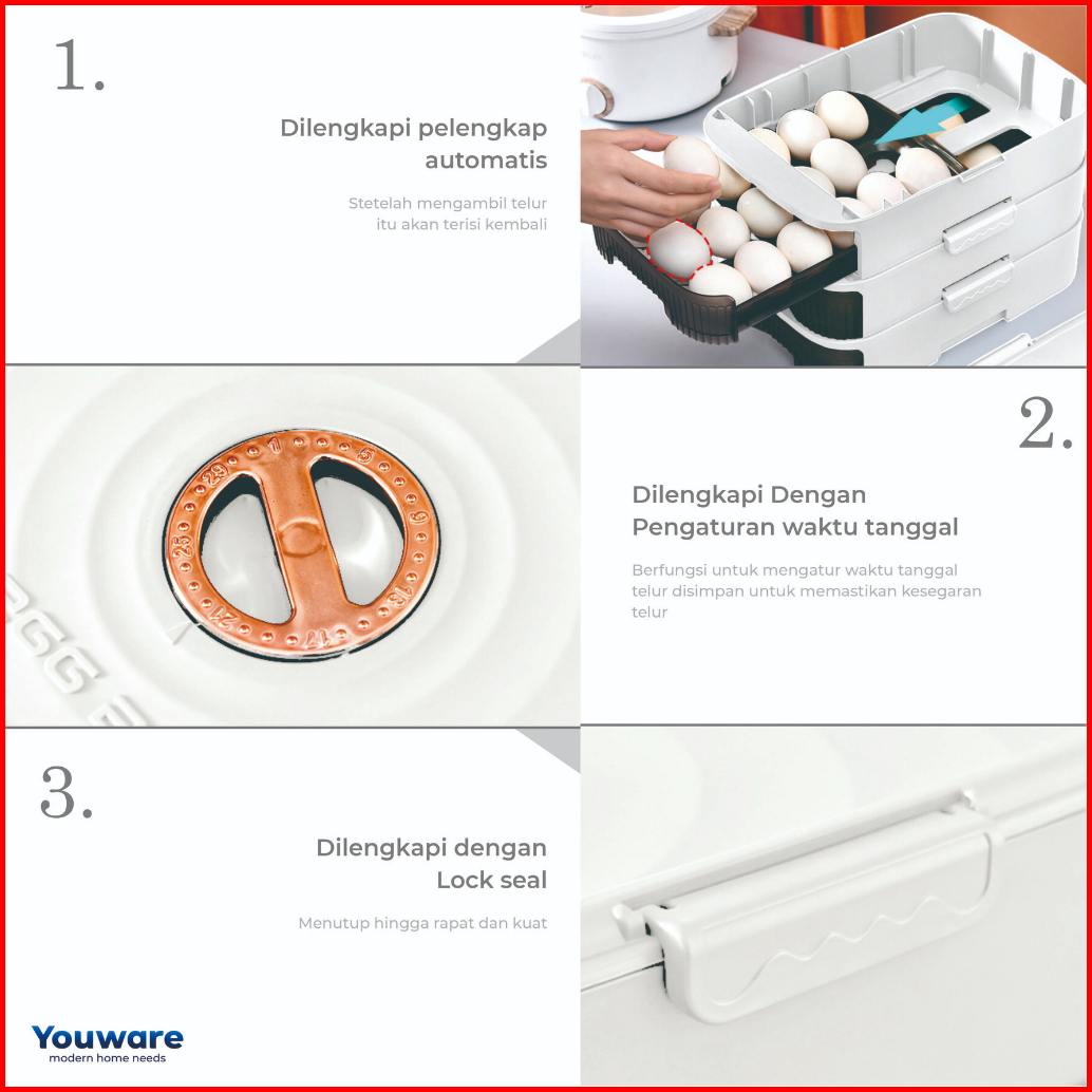 Youware - Beneth Egg Storage Box Kotak Telur Wadah Penyimpanan Telur Penyimpanan Telur Plastik Dengan Pengaturan Tanggal