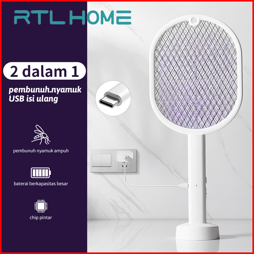 Codrtl Raket Nyamuk Elektrik Cas Ori Tahan Lama Murah Awet Charger Usb 2 In1 Raket Nyamuk Standing