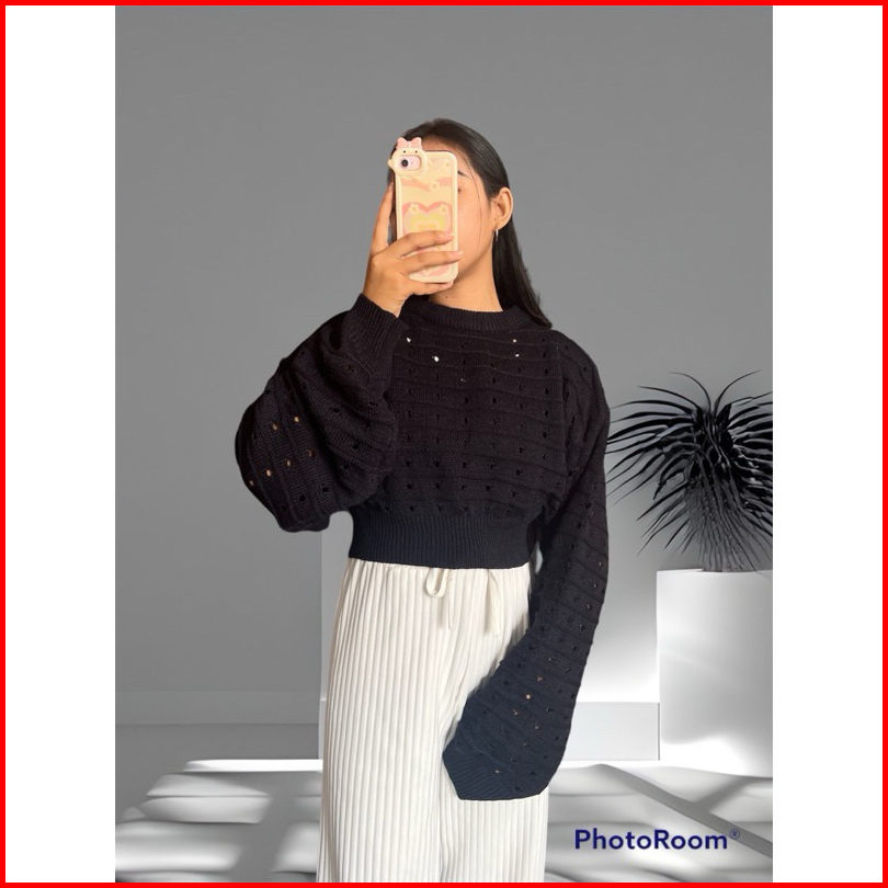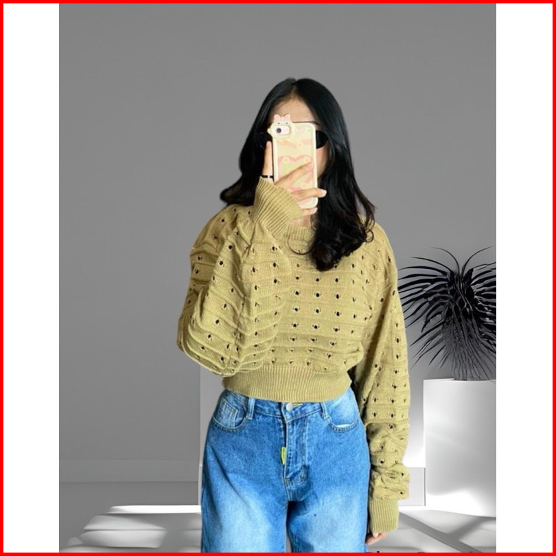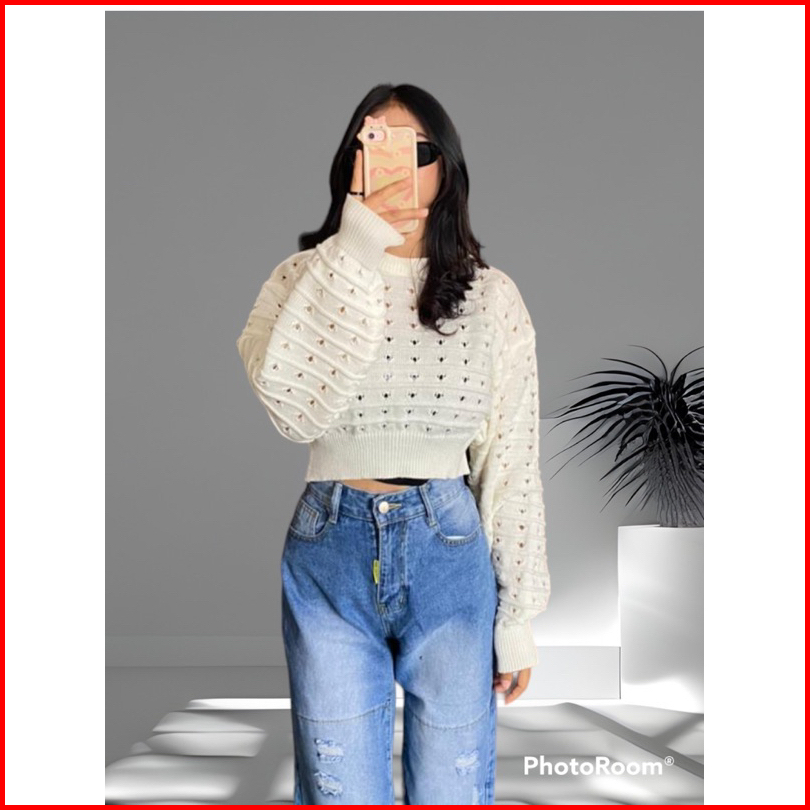 Belva Knite Sweater Rajut Wanita Hollow Shape Knitwear