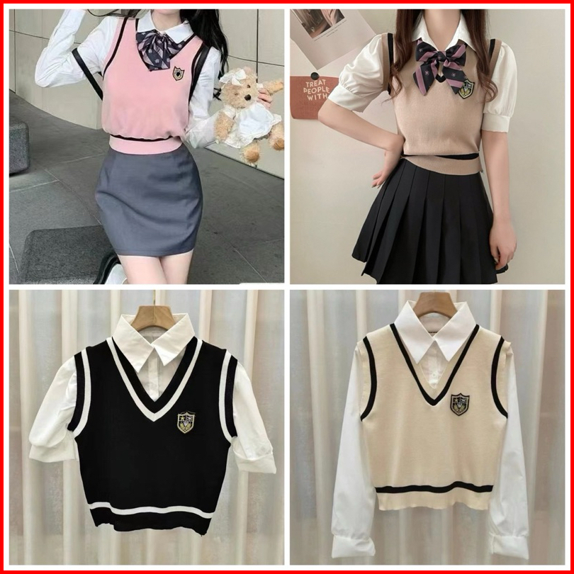 Atasan Wanita Lengan Panjang Longsleeve Two In One Polo Rompi Fashion Knitwear Polos Knit Rajut Plain Basic Korean Style