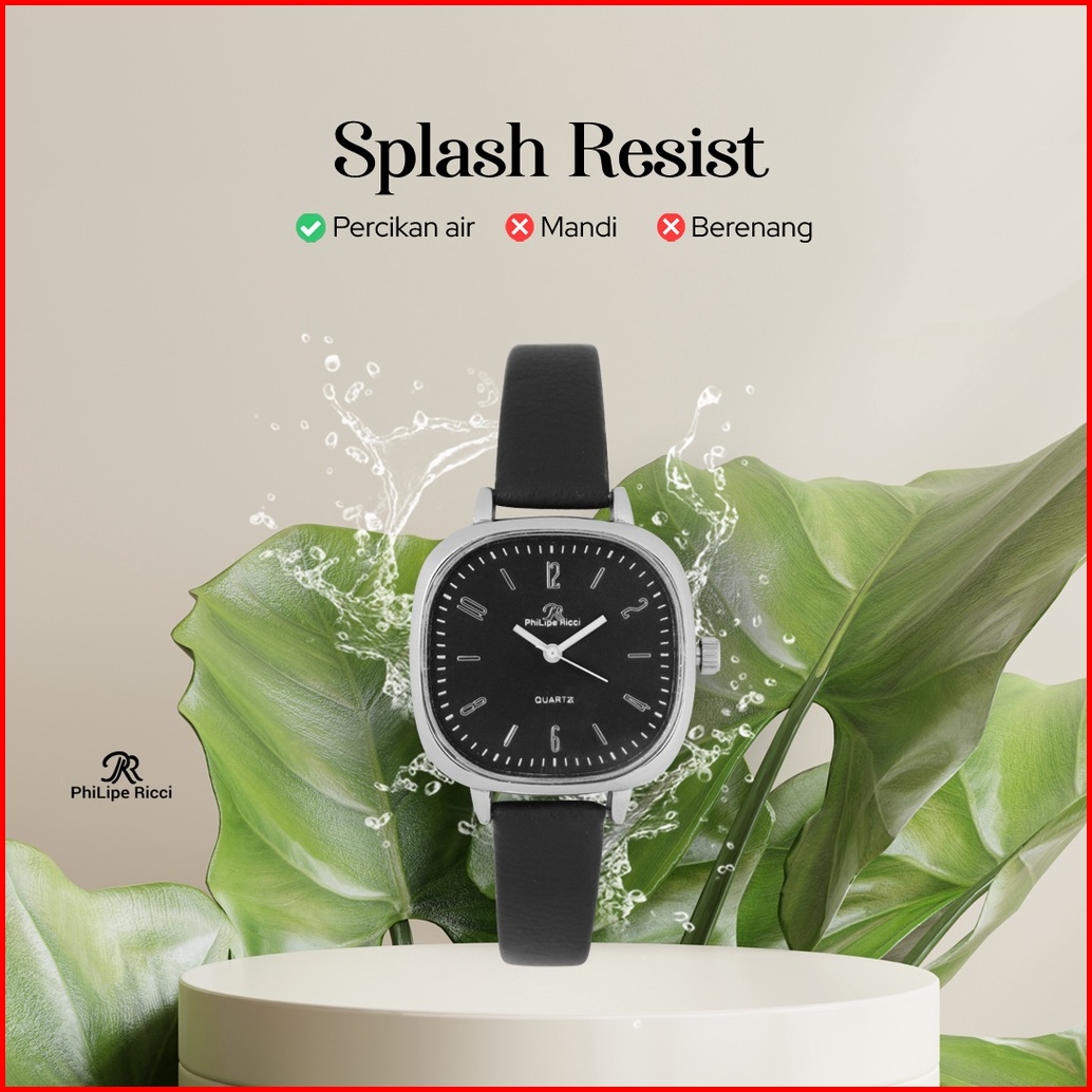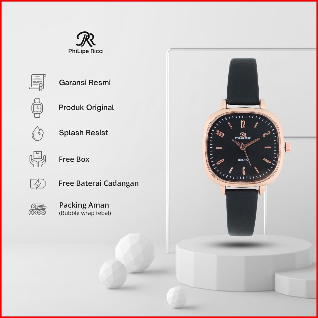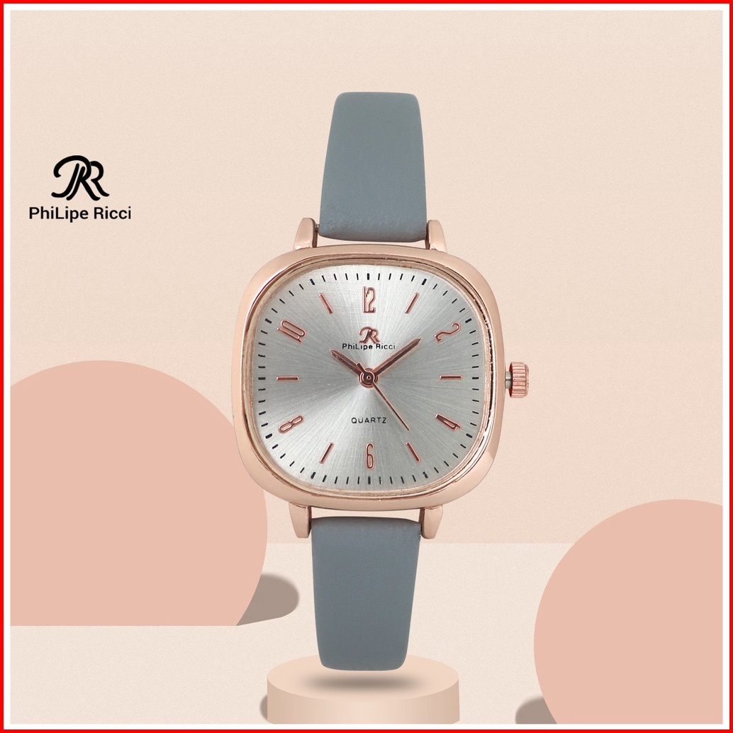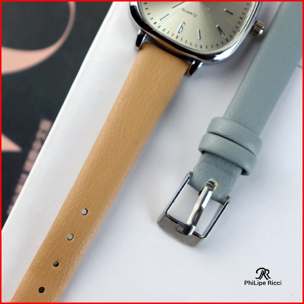 Philipe Ricci Jam Tangan Wanita Kotak Strap Tali Kulit Kecil Analog Imut Modern Terbaru Original 4232 Free Box