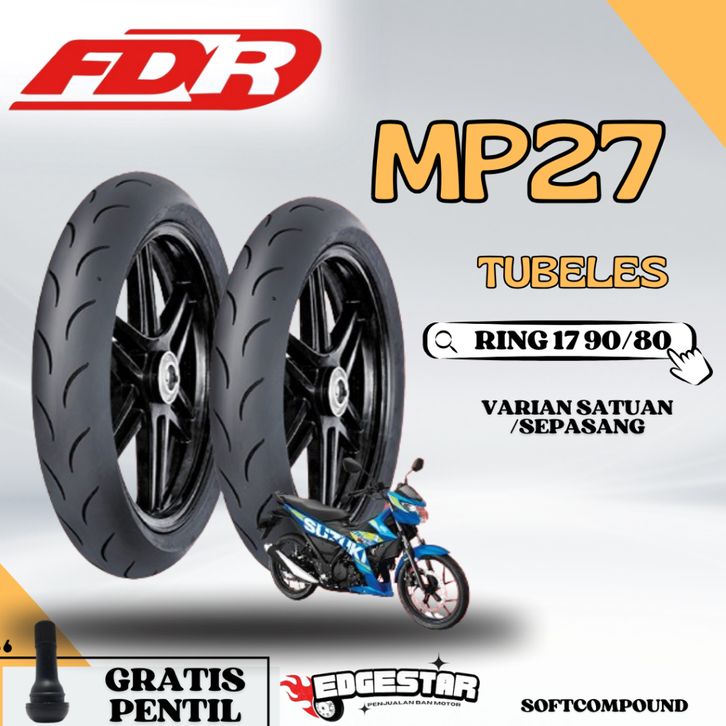 BAN SOFTCOUMPOUND MEREK FDR MP27 UKURAN 90/80 Ring 17 & 14 BAN MOTOR RING 17