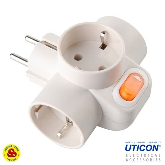 UTICON STEKER T ARDE + SAKLAR NEON SC-382 / STOP KONTAK 3 LUBANG