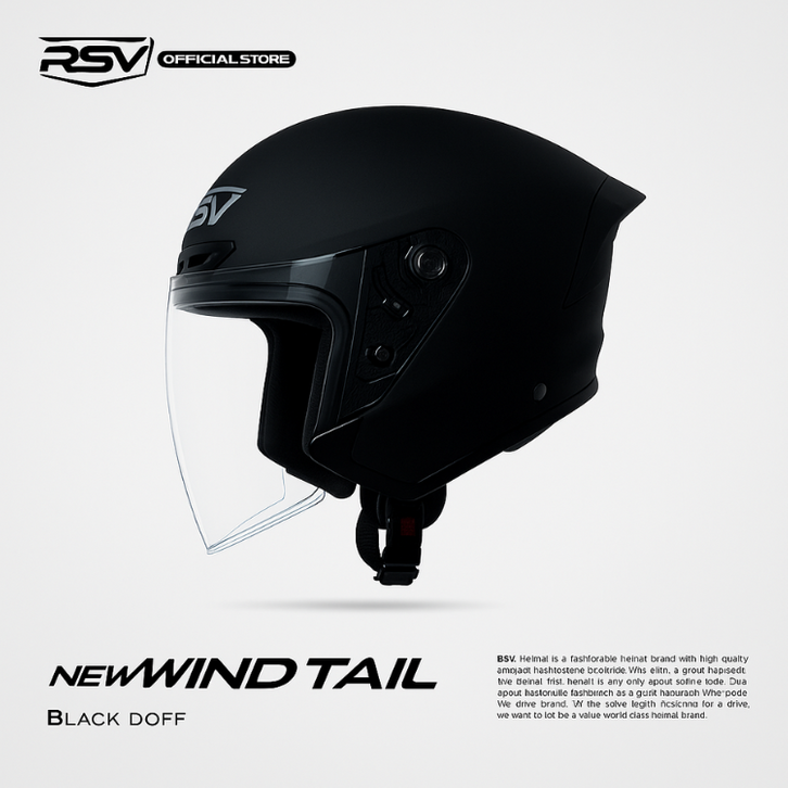 HELM SNI EDISI SPESIAL HALF FACE RSV NEW WINDTAIL BLACK MATTE SINGLE VISOR ORIGINAL RSV HELMET OFFICIAL STORE