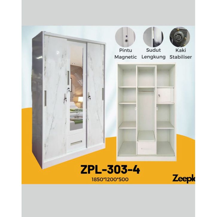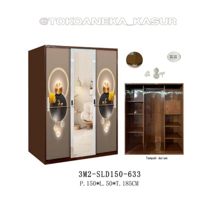 LEMARI PAKAIAN 3 PINTU BESI SLIDING AWET ANTI JAMUR ANTI AIR ANTI LEMBAB ANTI KARAT