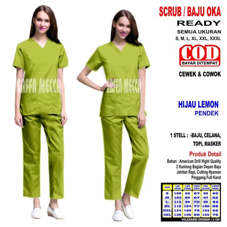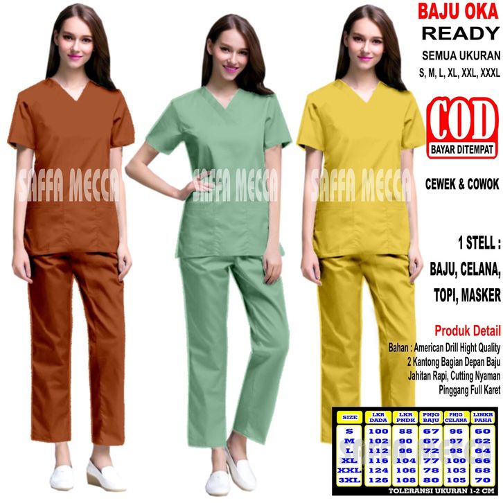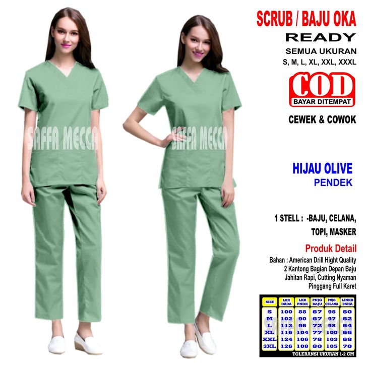 Baju OK Lengan Pendek Baju OKA Scrub Perawat / Baju Jaga Lengan Pendek Pria & Wanita