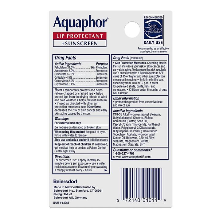 Aquaphor Lip Protectant Sunscreen SPF 30 Balm Pelembab Bibir Kering