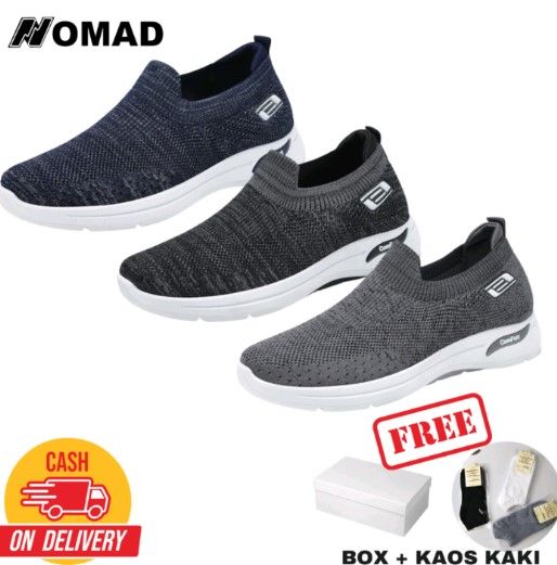 Nomad S02 Roamers Sepatu Slip on Casual Tanpa Tali S02 Gratis Kaos Kaki Karet Shoes Flat Pria Sneakers