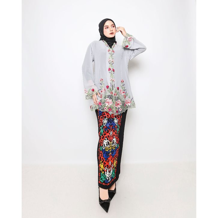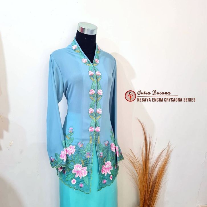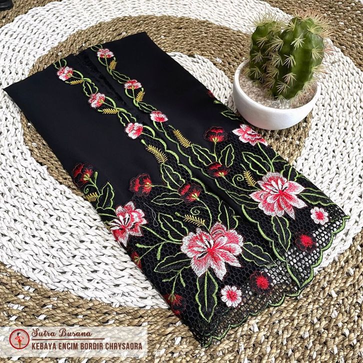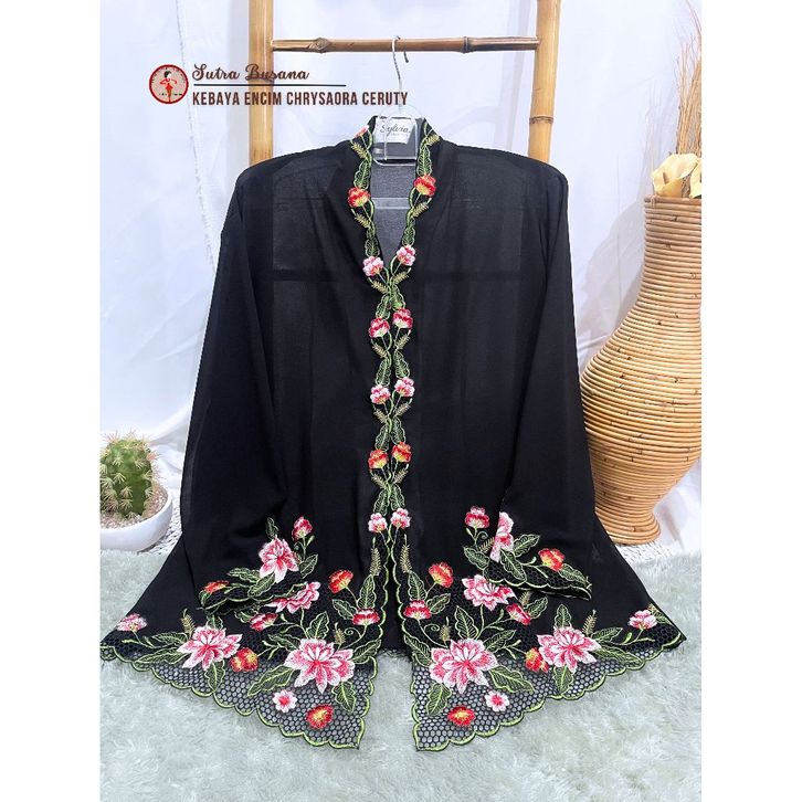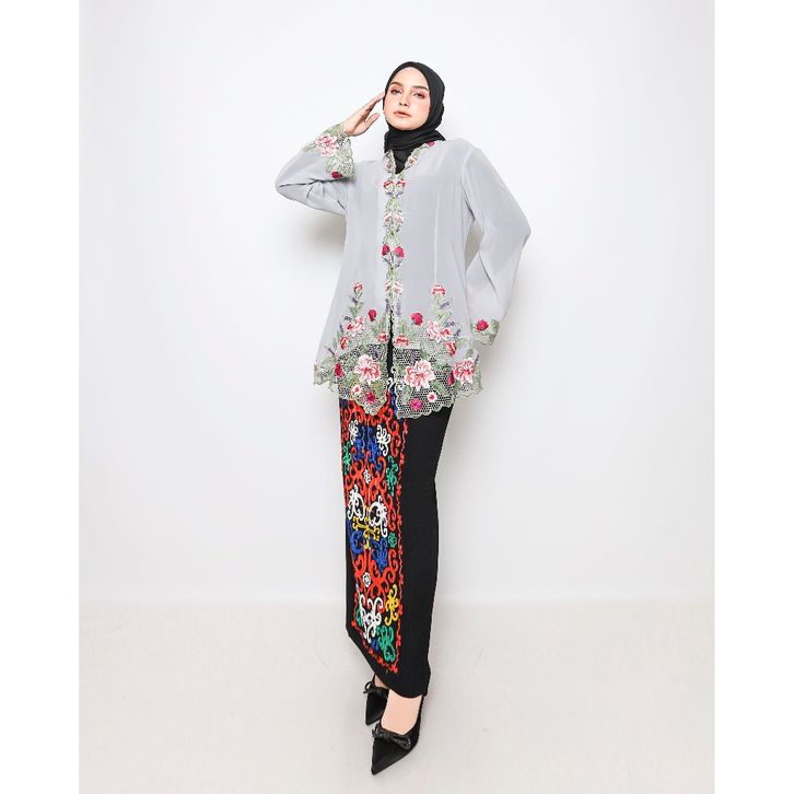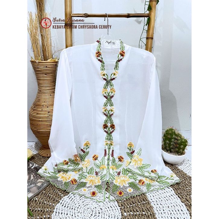 Kebaya Encim sifon Bordir bunga anggrek tangan panjang Chrysaora Pusat Bordir Tasikmalaya