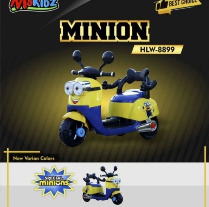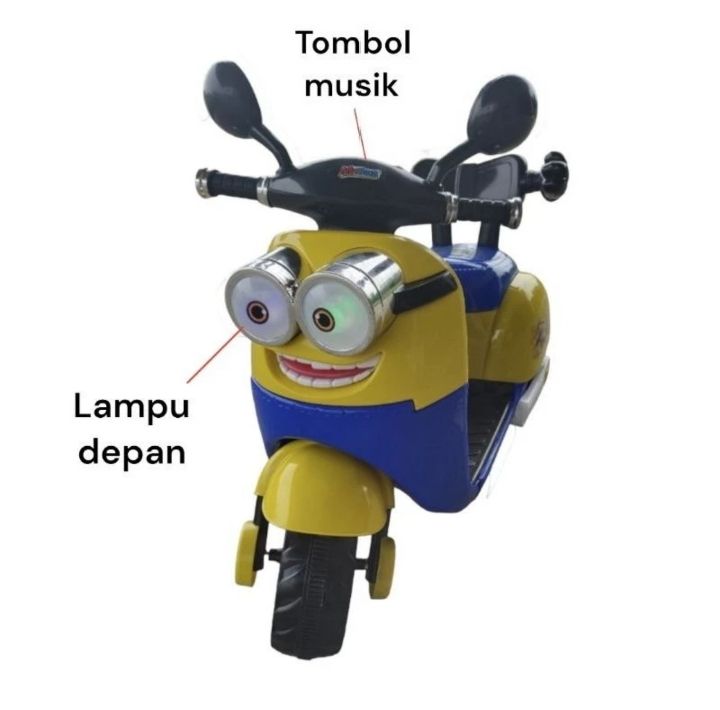 Sepeda Mainan Motor Aki Anak Vespa MINNION HLW 8899 Motor aki anak listik musik lampu