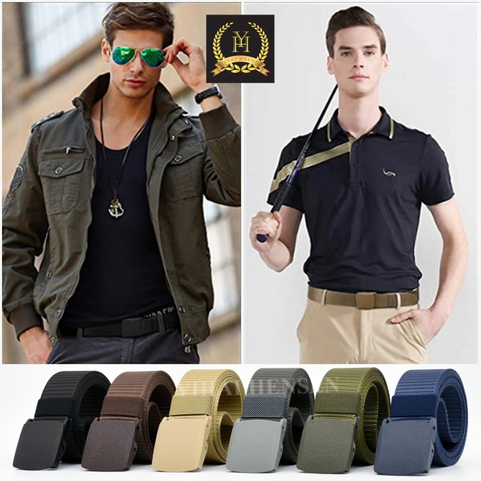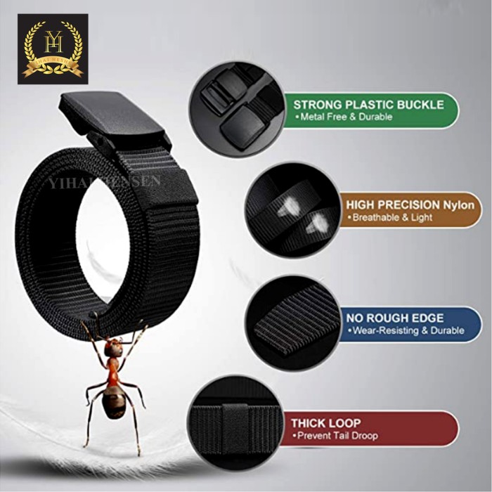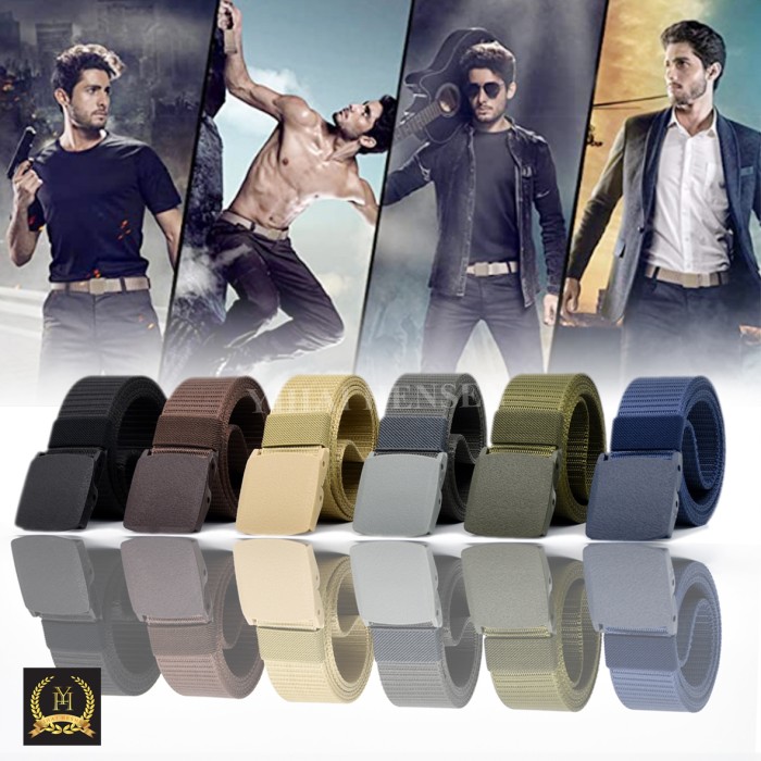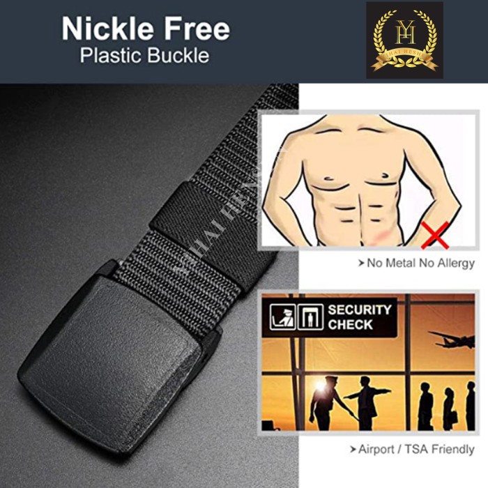 [Y&H] IKAT PINGGANG PRIA CANVAS KAIN NYLON MEN BELT ANTI METAL DETCTOR - ABU-ABU TUA