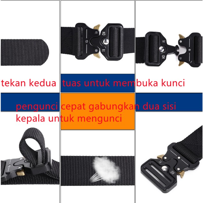 BITZEN IKAT PINGGANG PRIA NYLON CANVAS SABUK MILITARY TACTICAL GESPER - HITAM