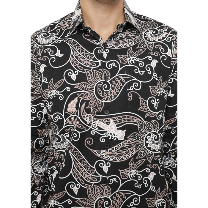KEMEJA BATIK SLIMFIT PRIA LENGAN PANJANG SLIM FIT AGRAPANA RAJATA - HITAM, XXL
