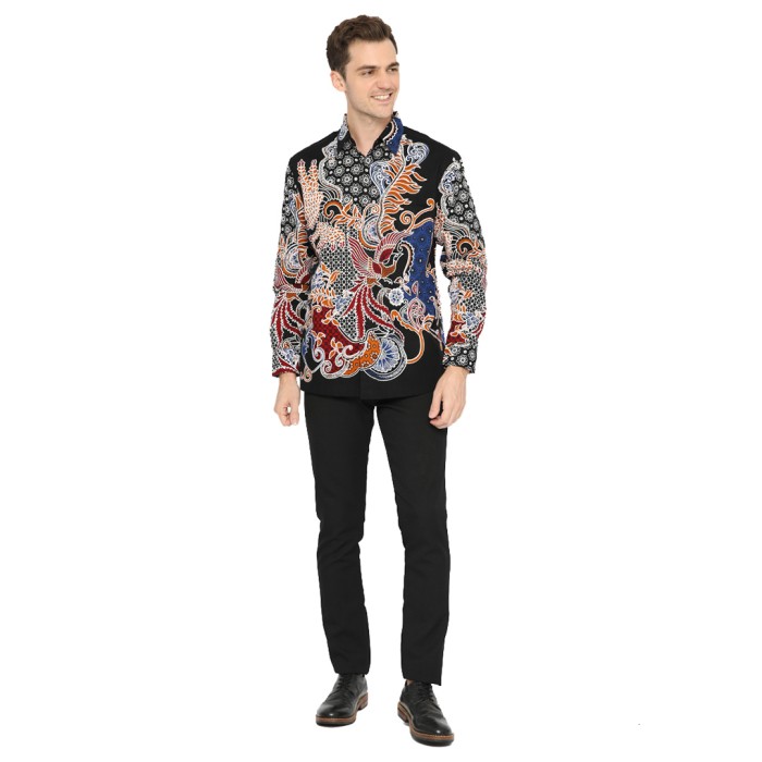 AGRAPANA BAJU BATIK PRIA KEMEJA BATIK PRIA LENGAN PANJANG PREMIUM GORA - HITAM, S