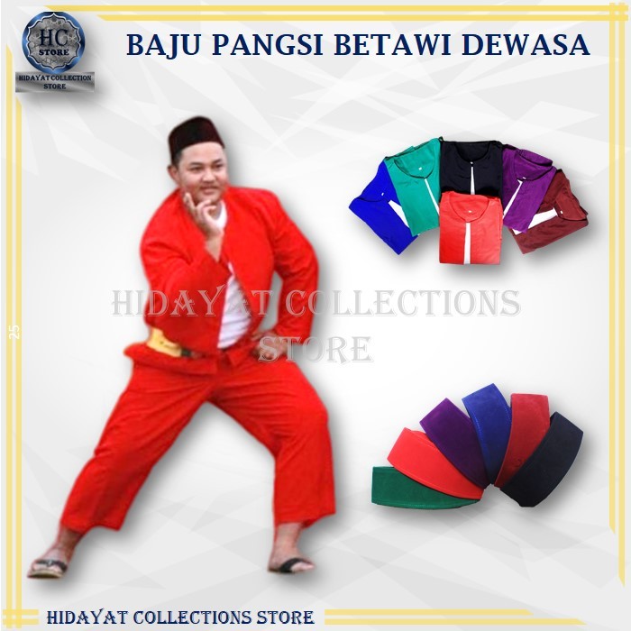BAJU PANGSI BETAWI DEWASA SETELAN PANGSI DEWASA BAJU PANGSI MERAH - PAKET D, MERAH SIZE XL