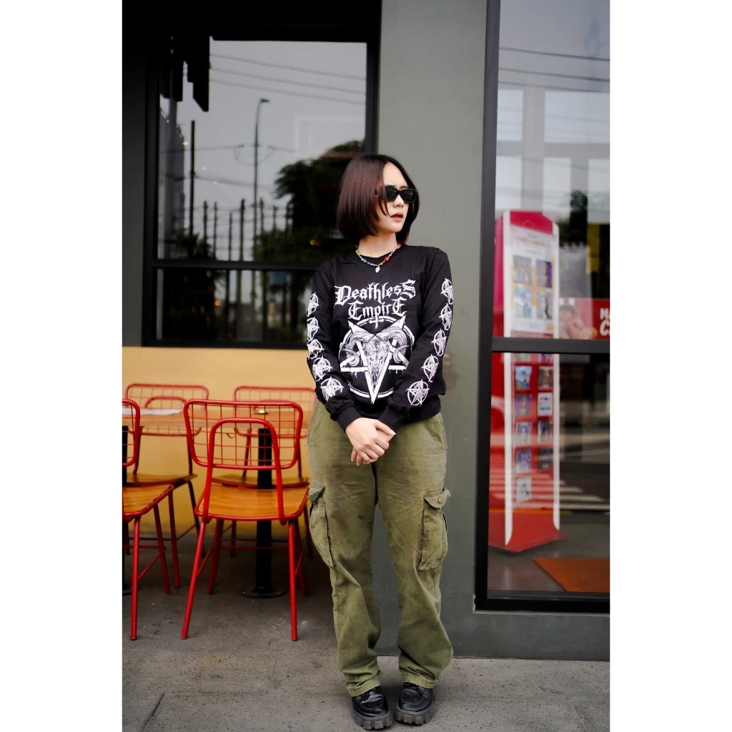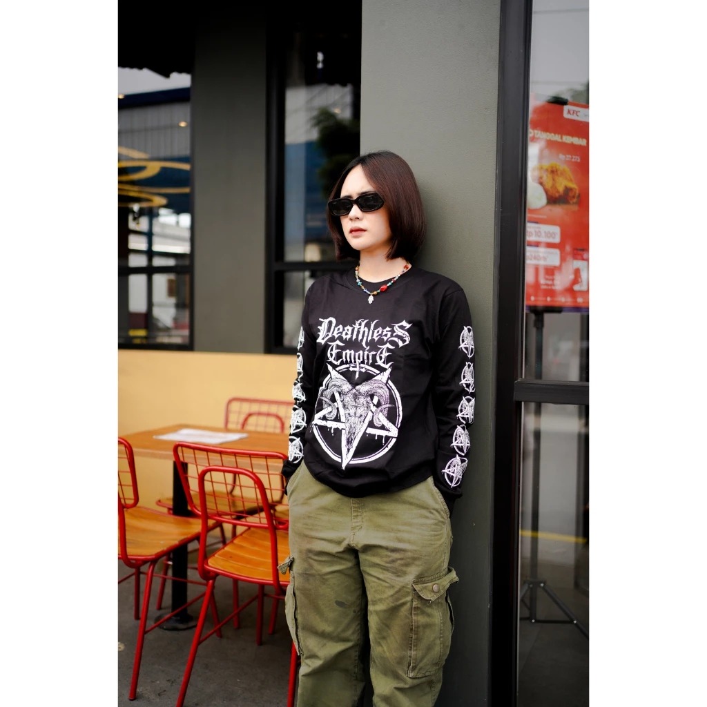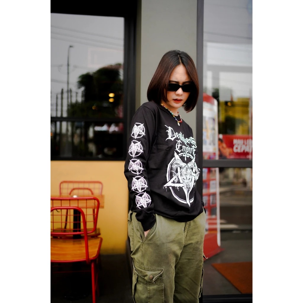 Kaos Lengan Panjang Pria Distro Motif Baphome Ls Series Baju Cowok Keren Terbaru 2024 Murah