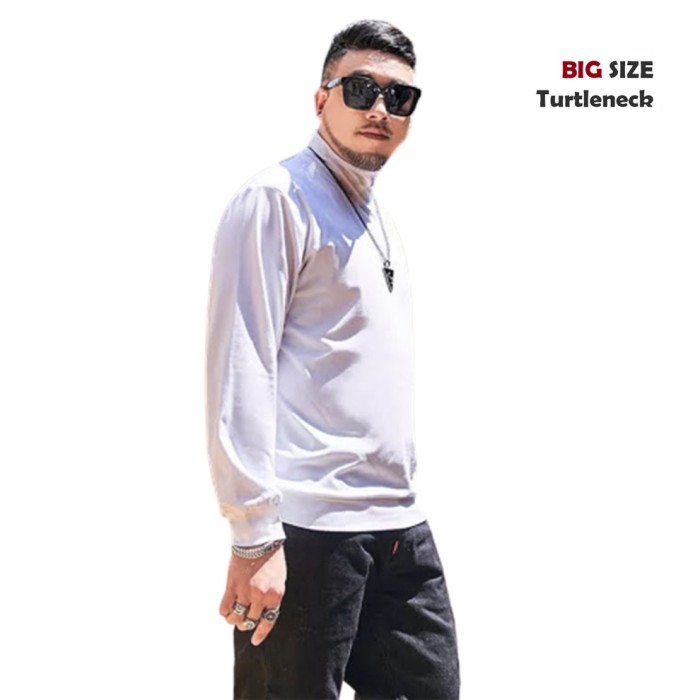 BAJU KAOS LEHER TINGGI LENGAN TANGAN PANJANG TURTLENECK PRIA XL / XXL - HITAM, XL