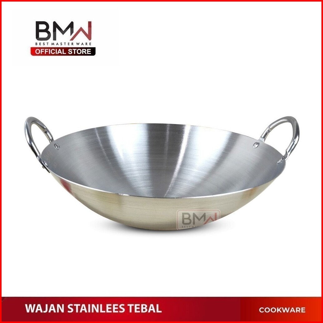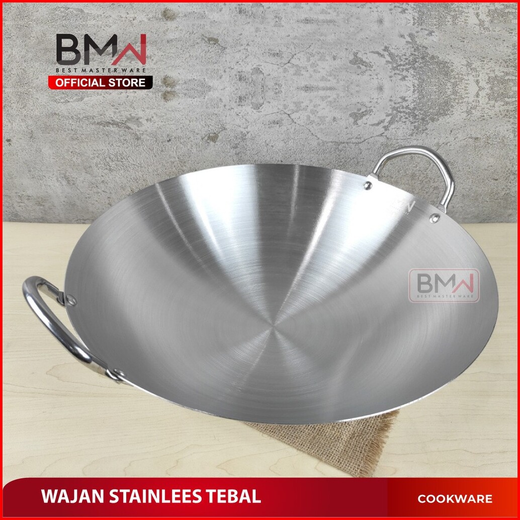 Bmw Kitchen Ware - Wajan Premium Tebal Kuali Penggorengan Wok Stainless Steel Wajan Anti Lengket Food Grade