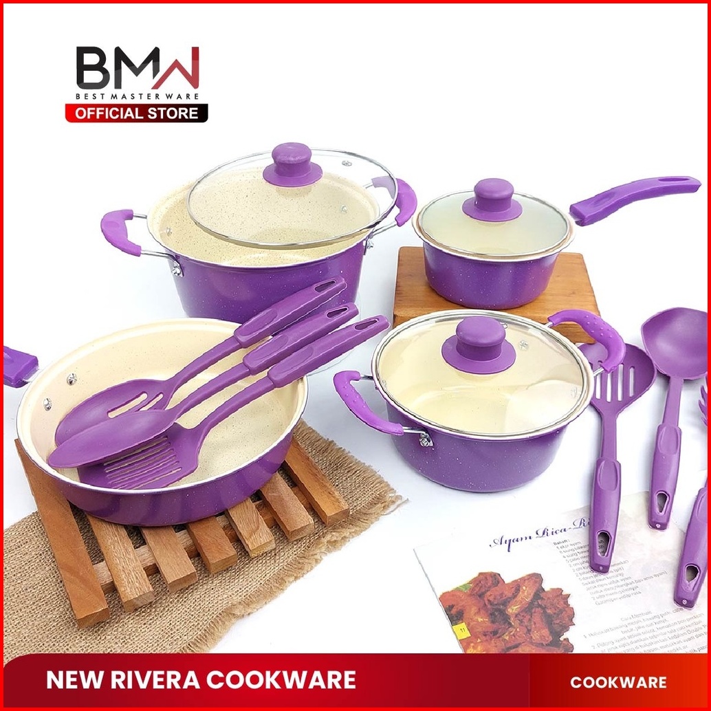 Bmw Kitchen Ware - Teflon Riverra Panci Set Warna Frypan Saucepan Cookware Set Free Spatula 13pcs