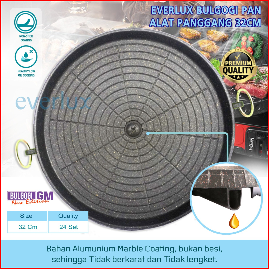 Korean Yakiniku Grill Pan Marble Coating - Alat Panggang Anti Lengket 2157 Panci Pemanggang Sate Daging Barbeque Bbq Pan