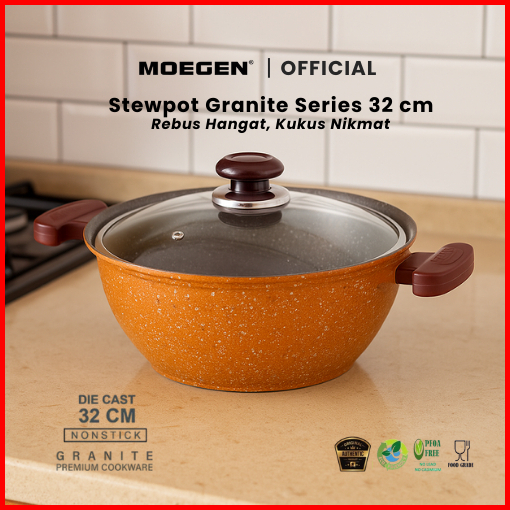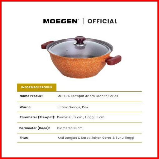 Moegen Stewpot Granite Series 32 Cm Kaca 30 Cm Anti Lengket