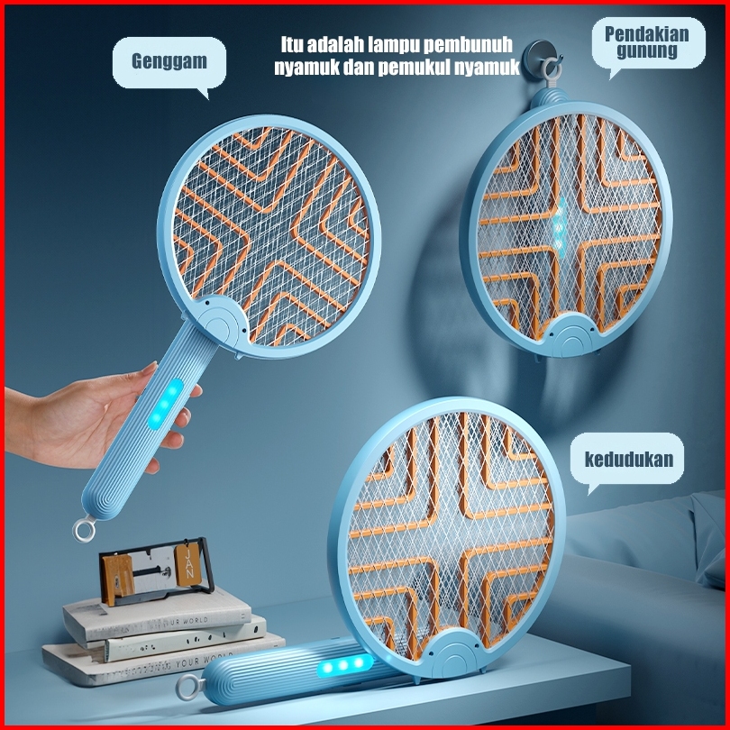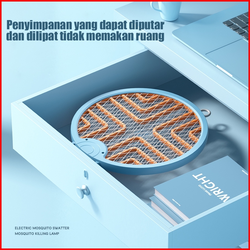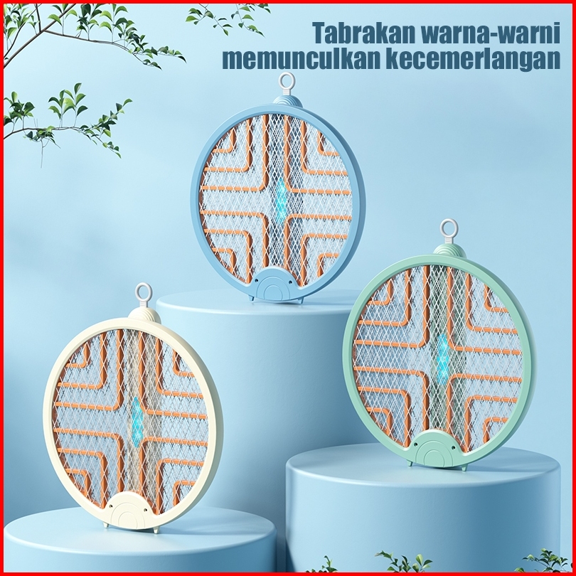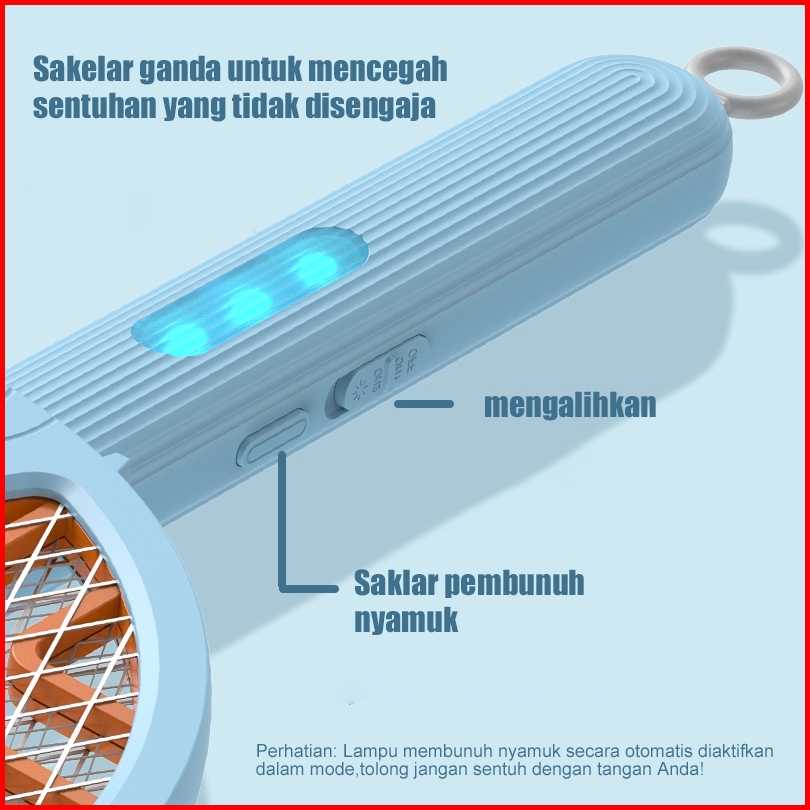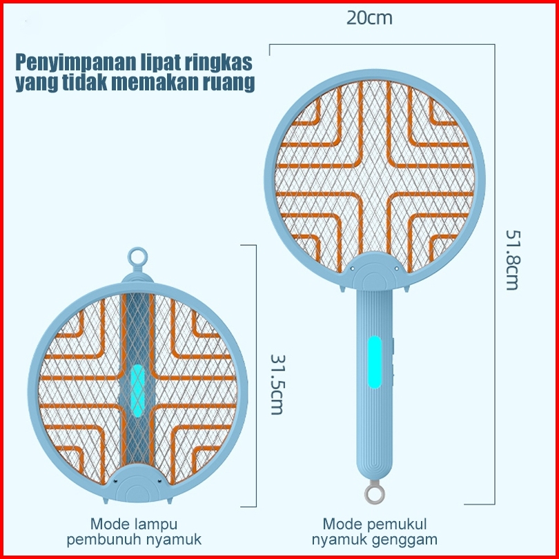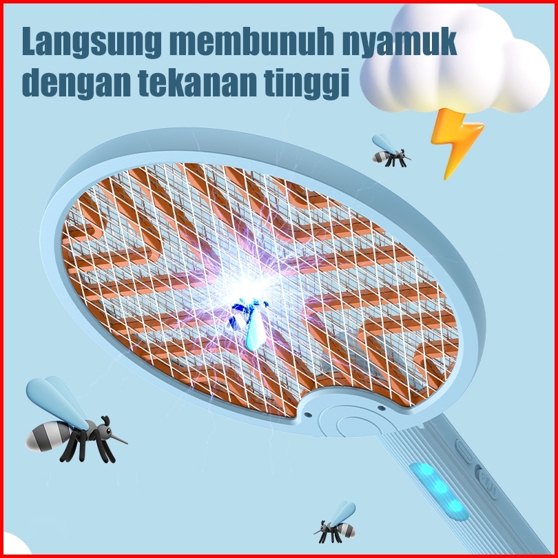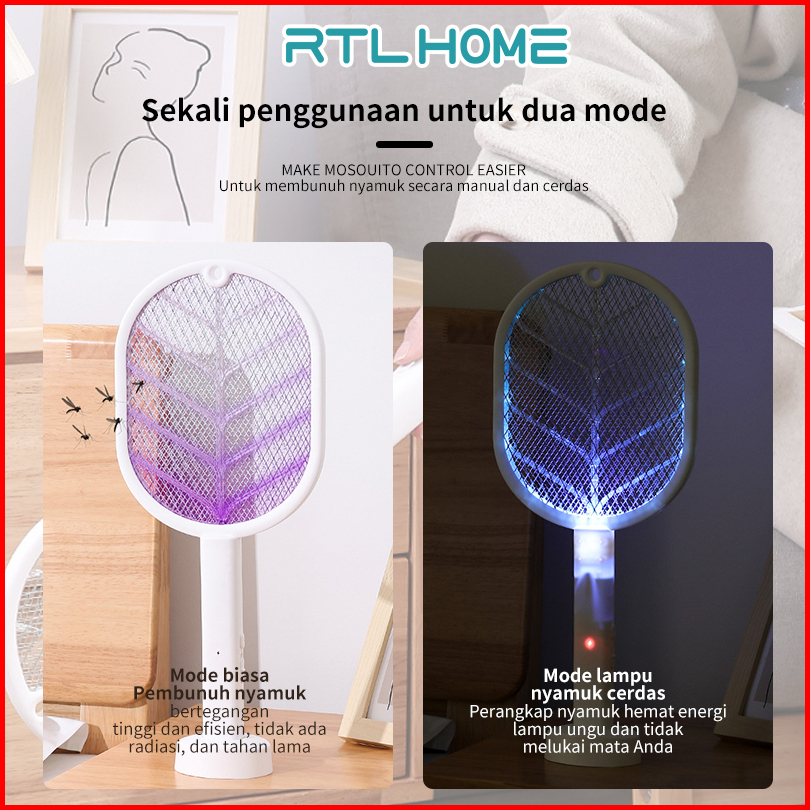 Rtl Raket Nyamuk Led Light Baterai Powerful Rechargeable Pembasmi Pemukul Nyamuk Motif