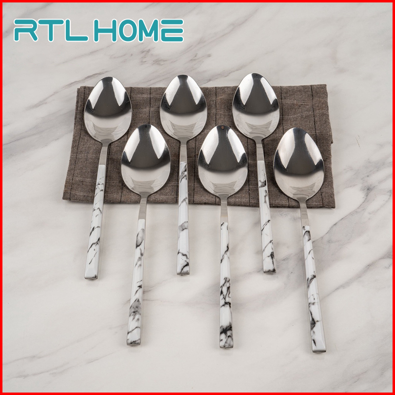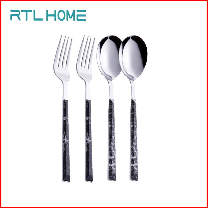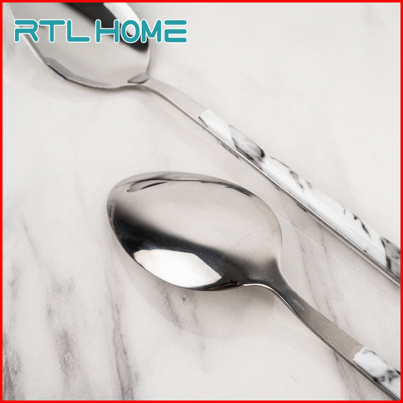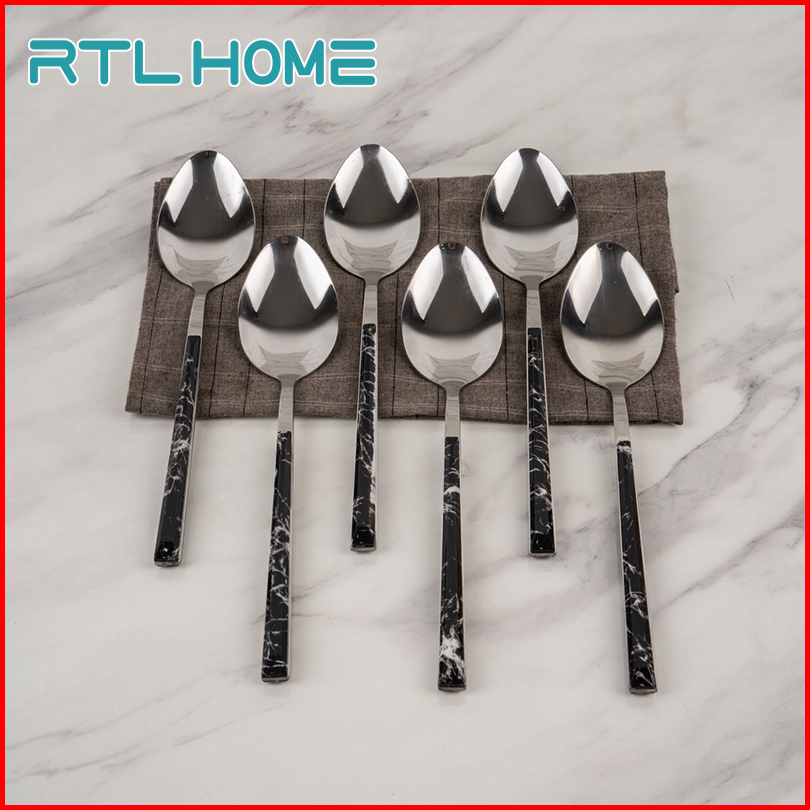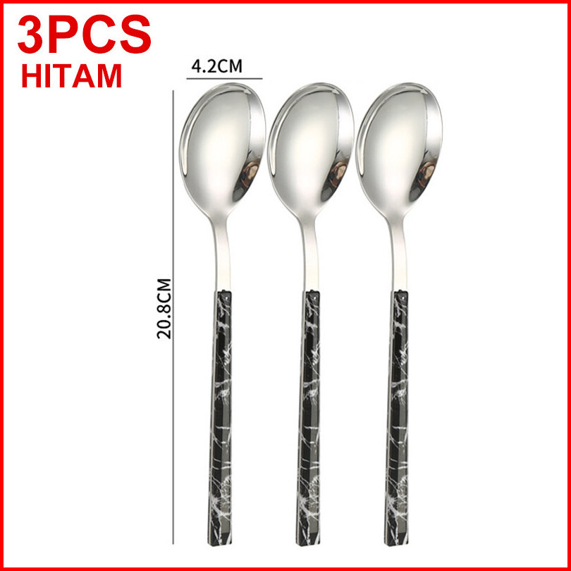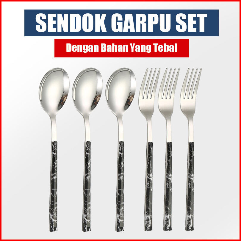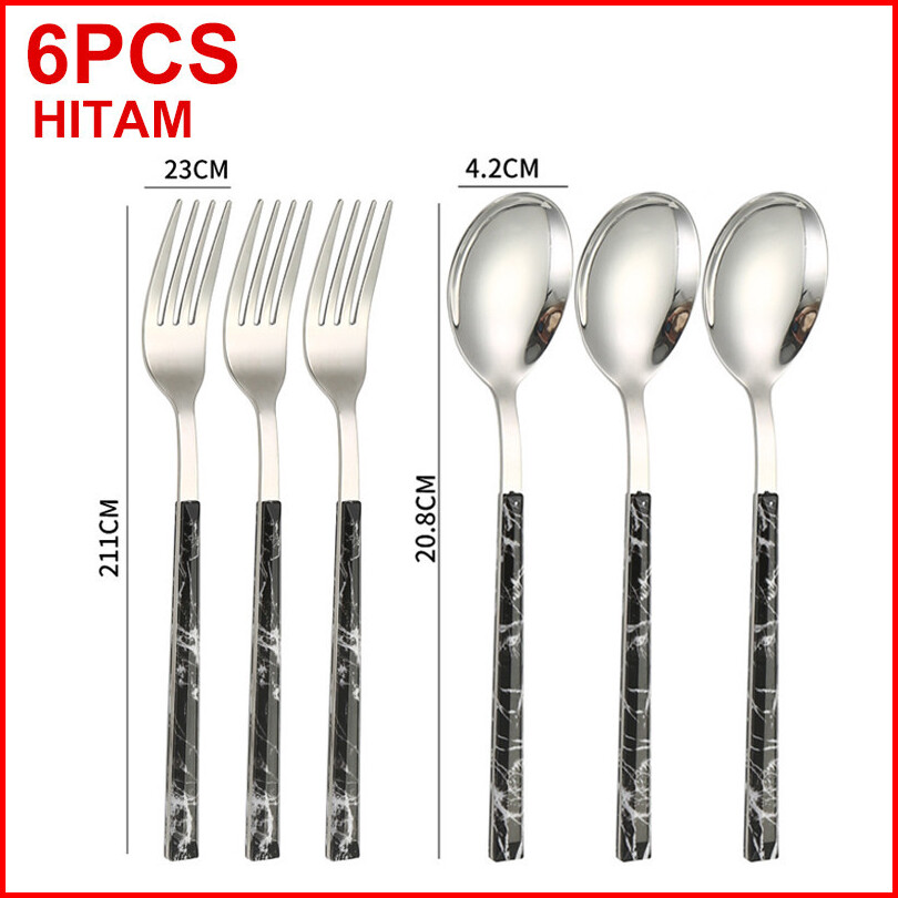 6pcsrtl Sendok Garpu Makan Tebal Motif Marble Isi 6pcs Stainlees Steel Berkualitas