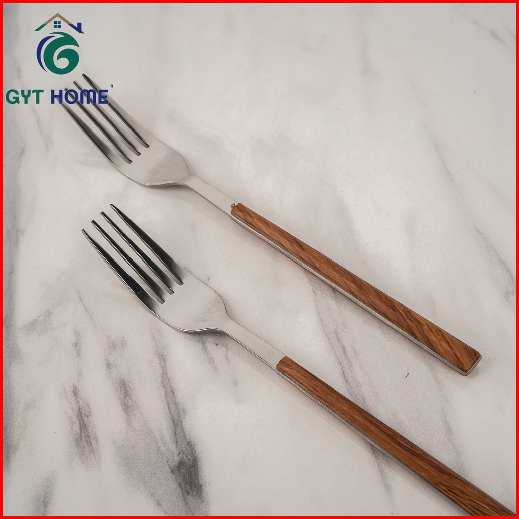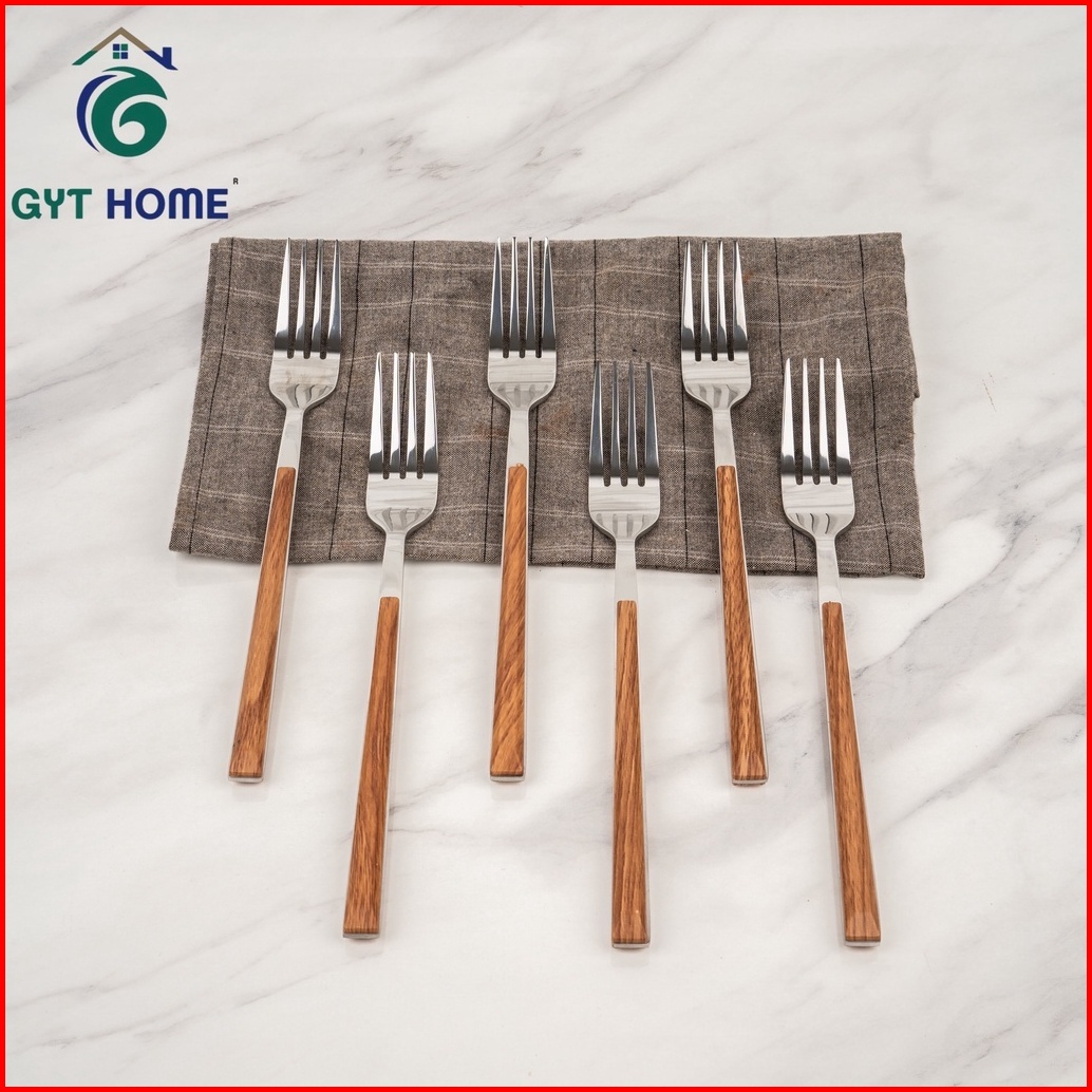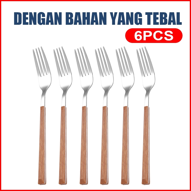 Rtl Garpu Makan Tebal Isi 6 Pcs Gagang Motif Kayu Stainless Steel