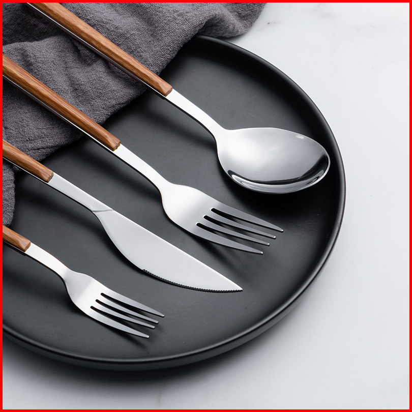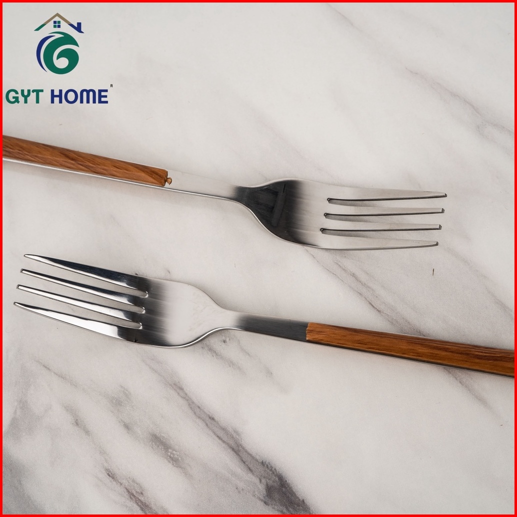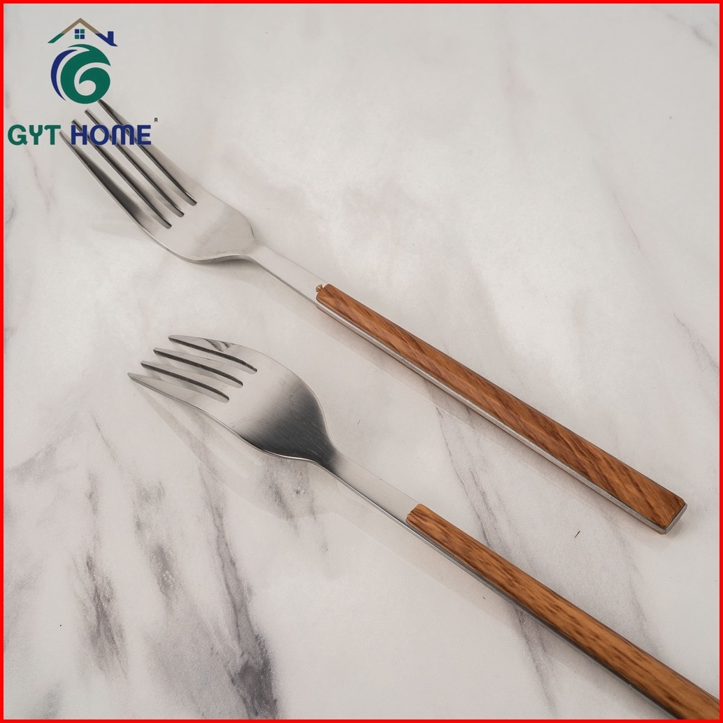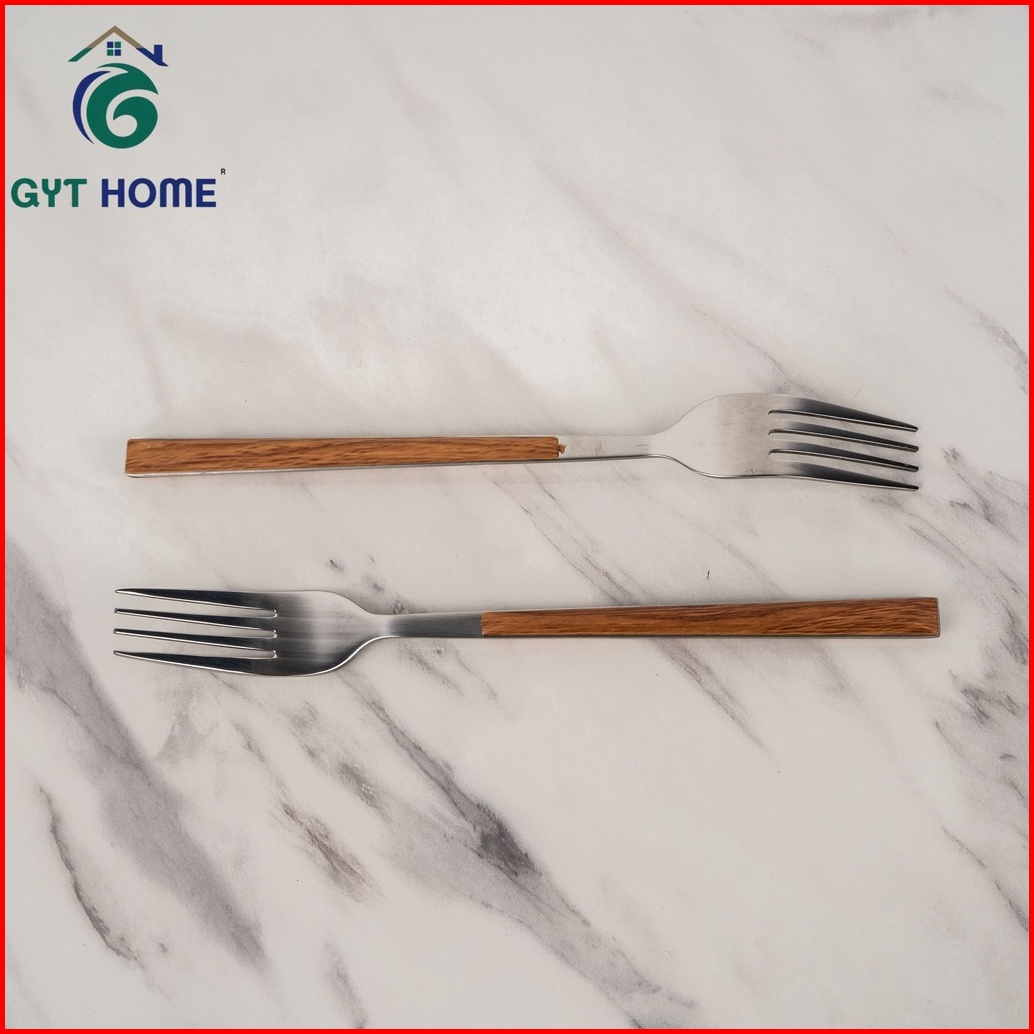 Rtl Garpu Makan Tebal Isi 6 Pcs Gagang Motif Kayu Stainless Steel
