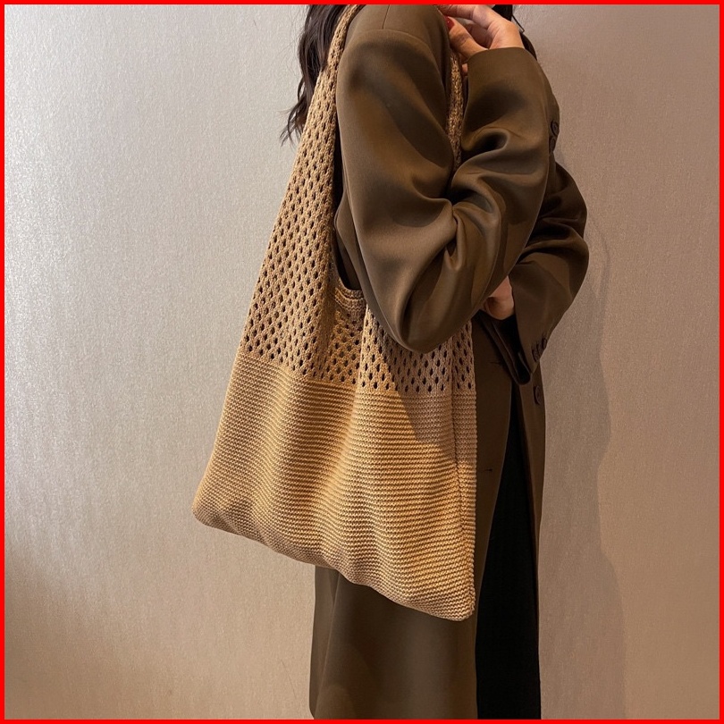 Little Maple Bella Knitted Tote Bag Tas Korea Rajut Besar Pantai Tas Kasual Casual