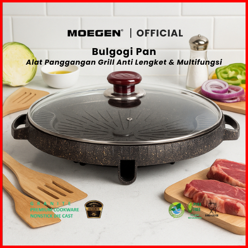 Moegen Bulgogi Granite Pan 32cm Panggangan Bbq Grill Pan Anti Lengket