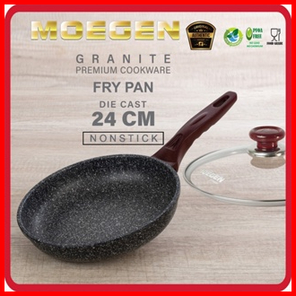 Moegen Fry Pan 24cm Granite Series Plus Tutup Kaca Anti Lengket