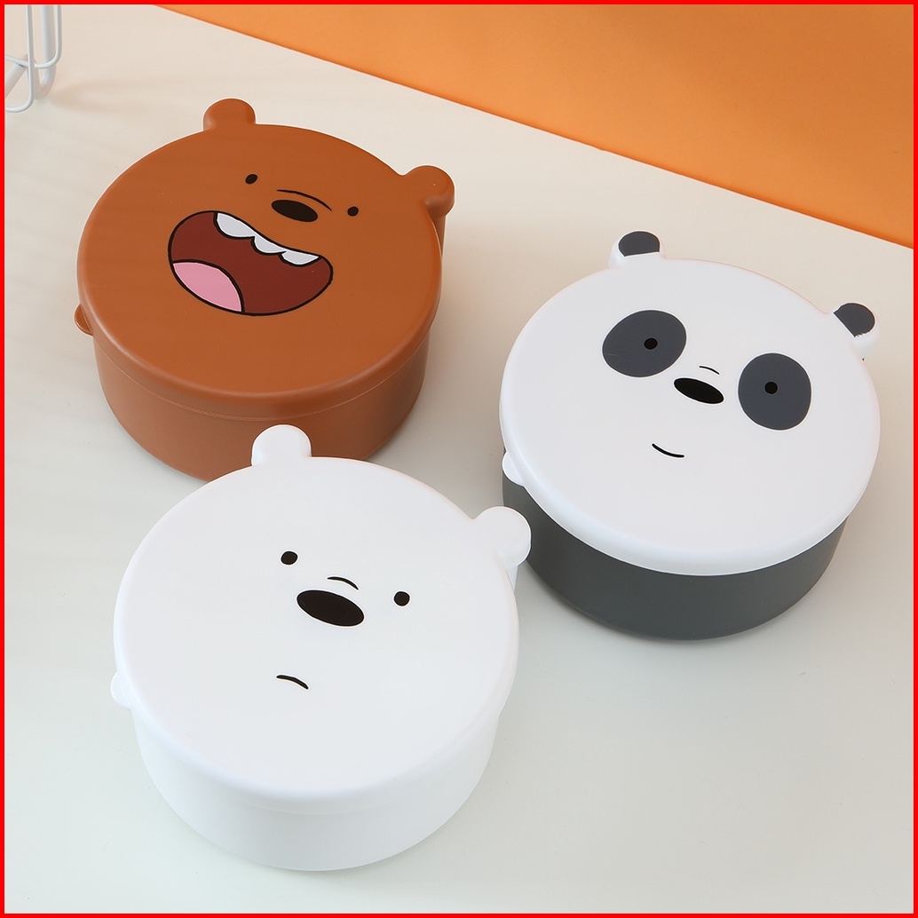 Miniso Kotak Makan Tempat We Bare Bears Lucu Penyimpanan Makanan 4 Pcs Set Dapur Kulkas Food Storage