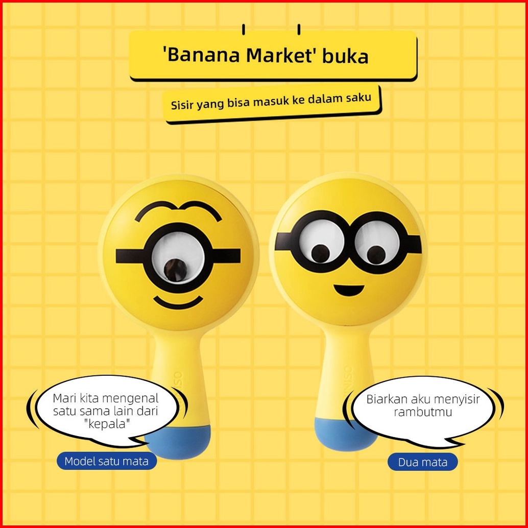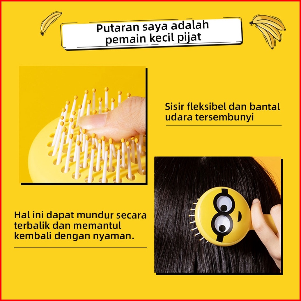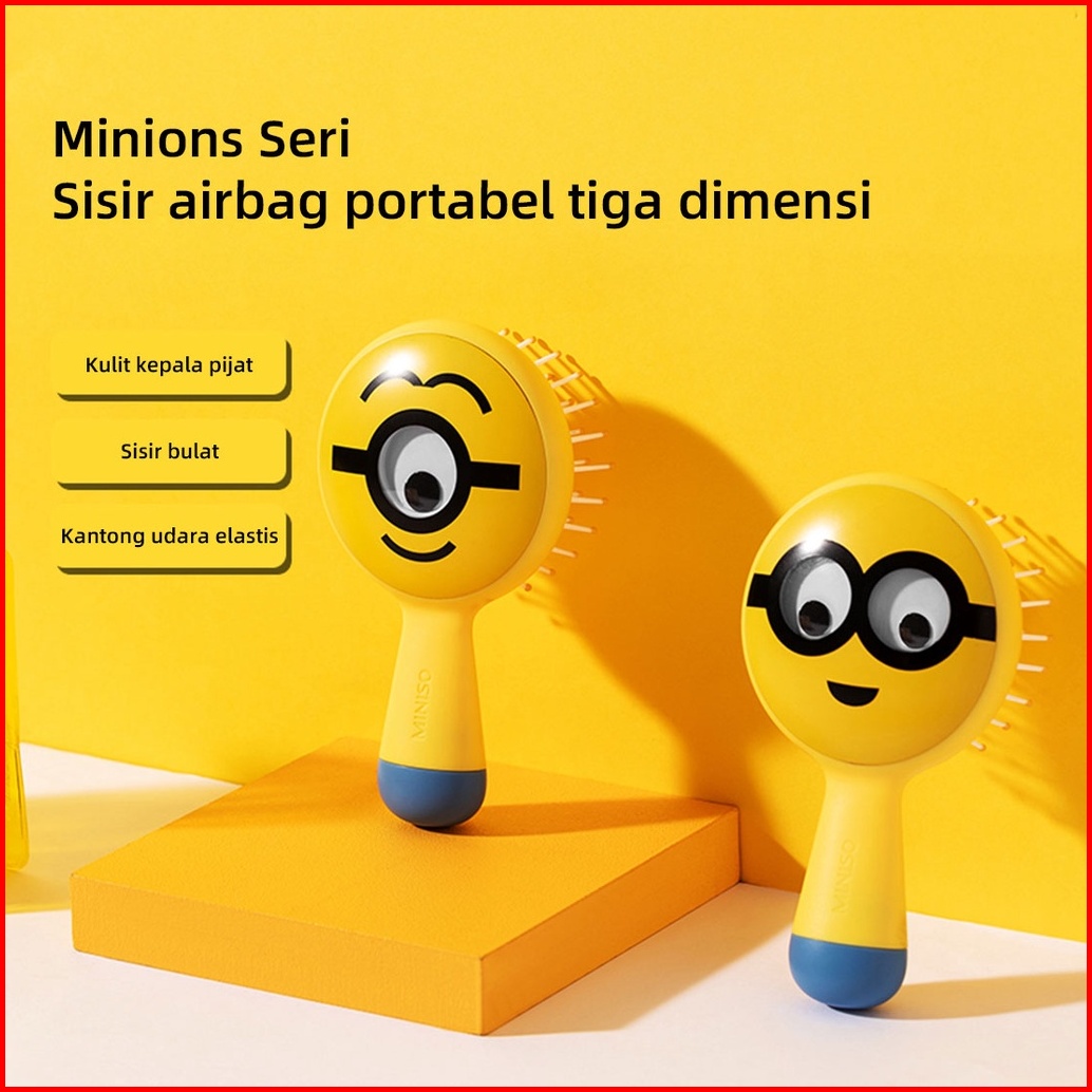 Delistminiso X Minions Collection Sisir Rambut Wanita Mini Portable Paddle Brush Comb Hair Brush Massage Comb Sisir Ramb