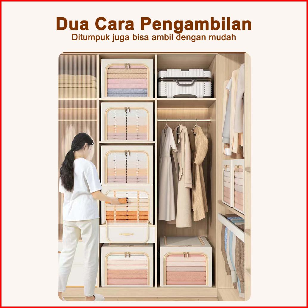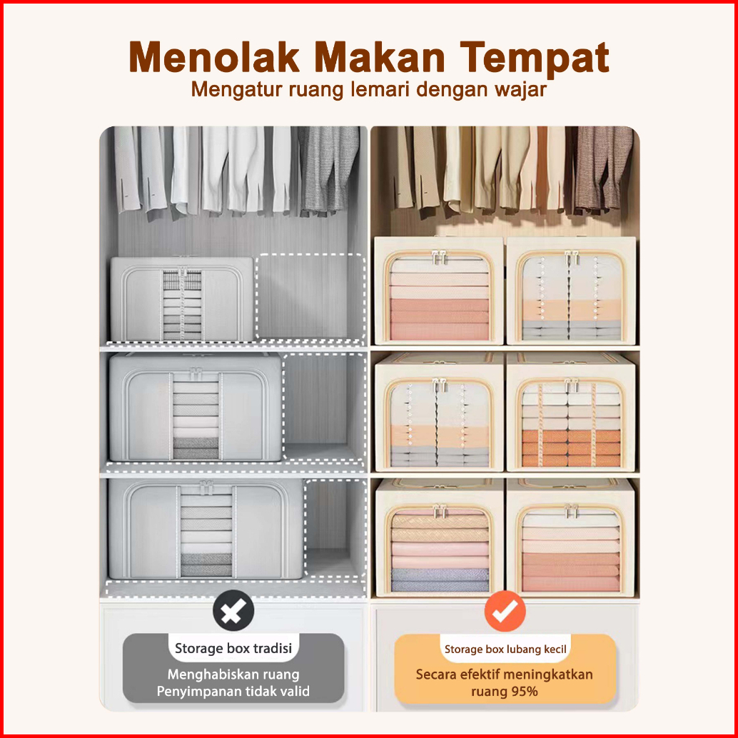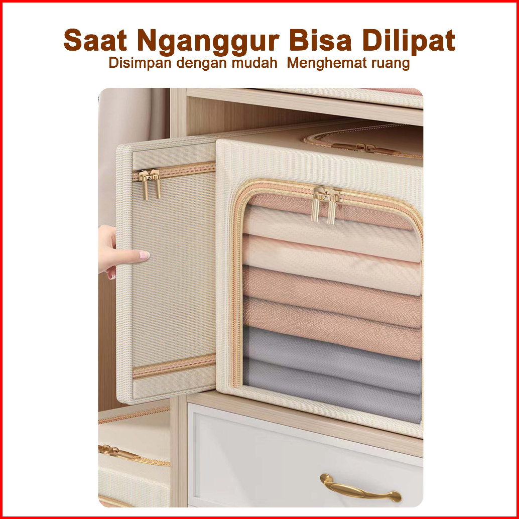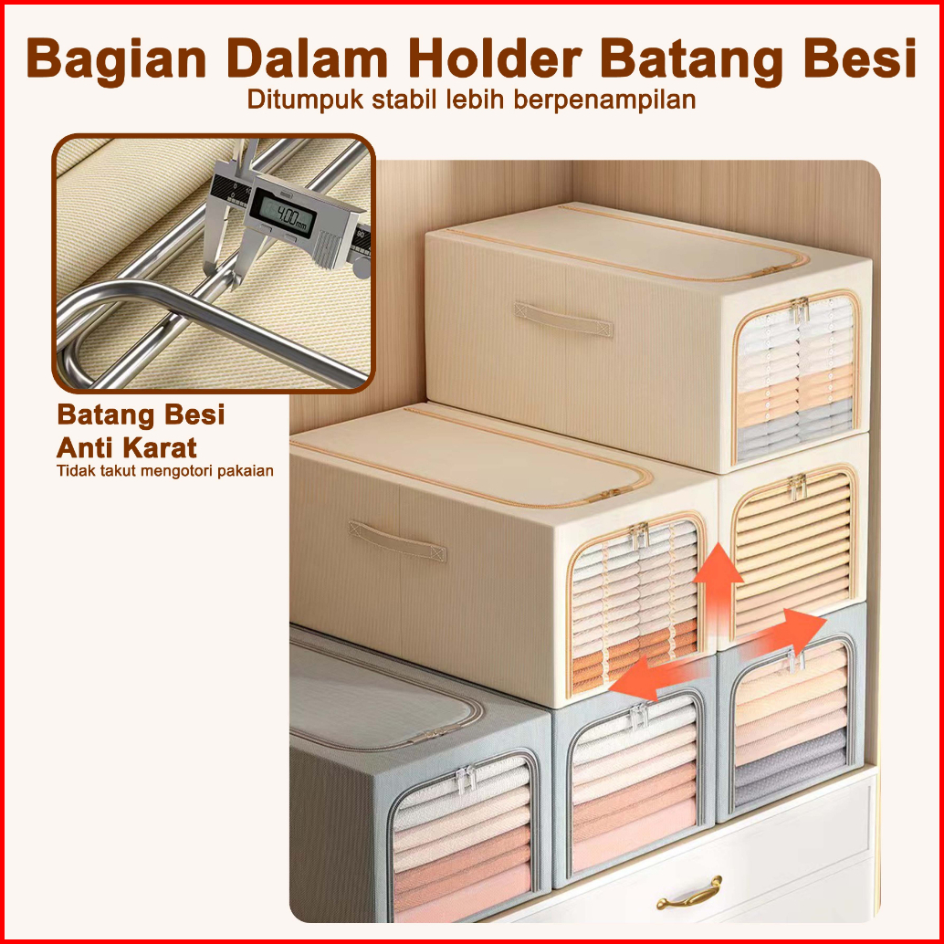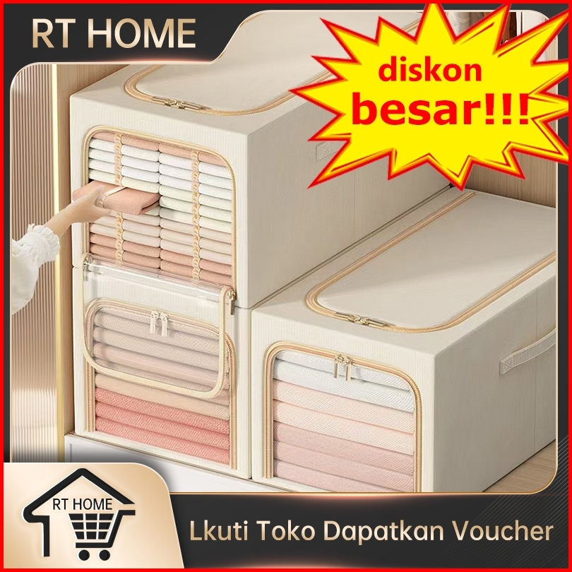 Rt Home Persegi Panjang Baru 56l Lipat Linen Katun Lebih Tebal Kotak Penyimpanan Pakaian Serbaguna Mainan Box Tahan Lemb