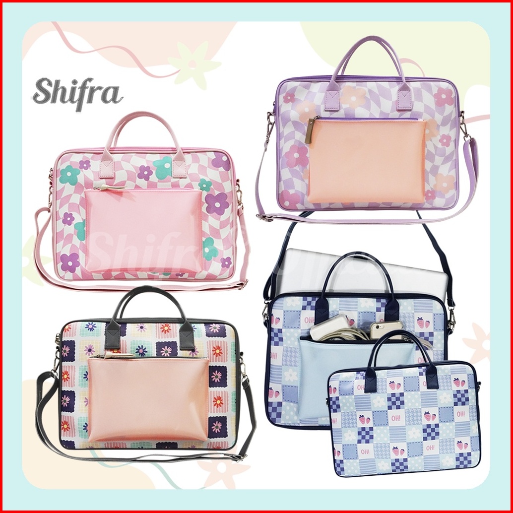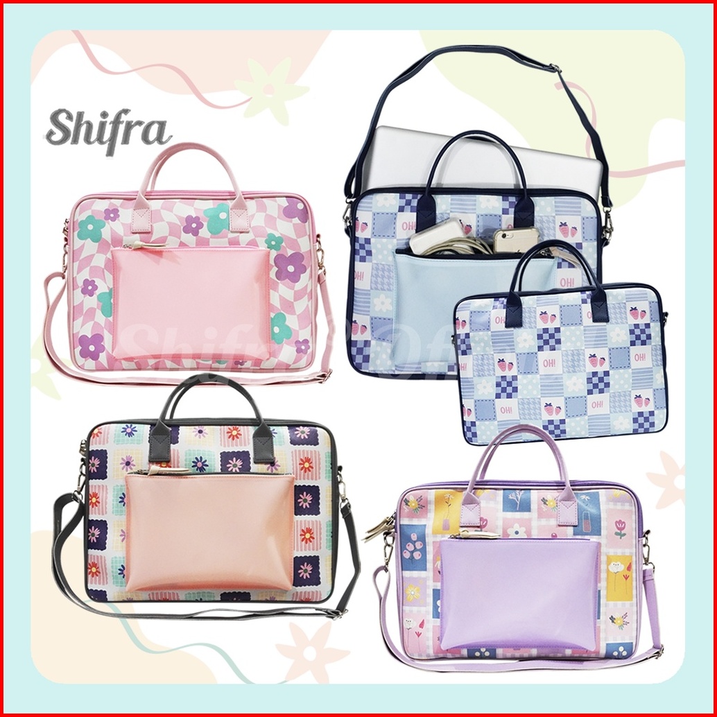 Shifra Tas Laptop Selempang Tali Panjang Kantong Silicon Warna Warni Pink Purple Grey Blue