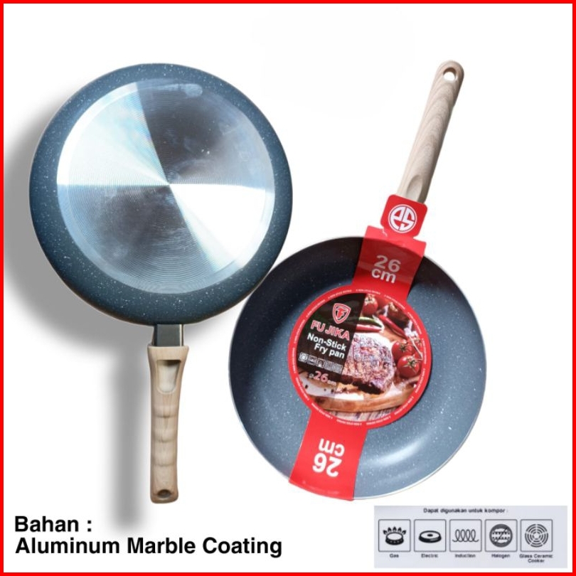 Granite Fry Pan Marble Anti Lengket Ukuran 20cm 22cm 24cm 26cm Wajan Penggorengan Modern