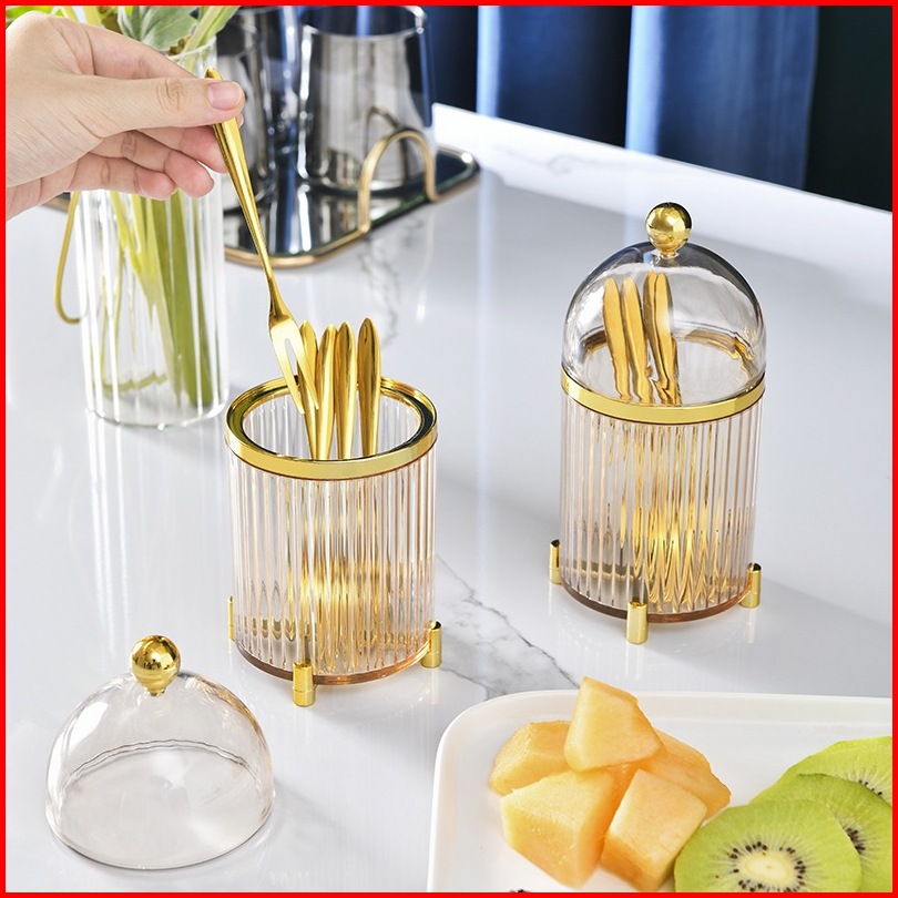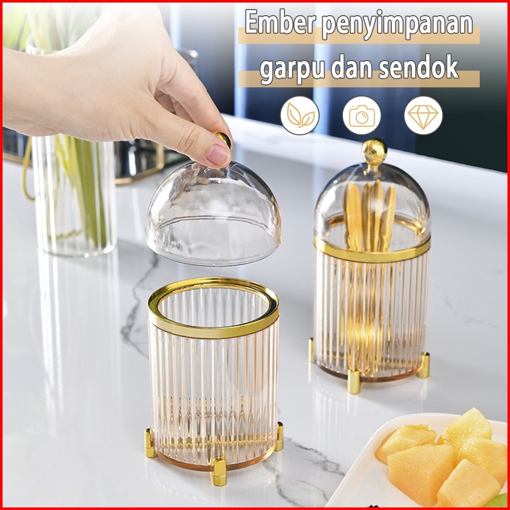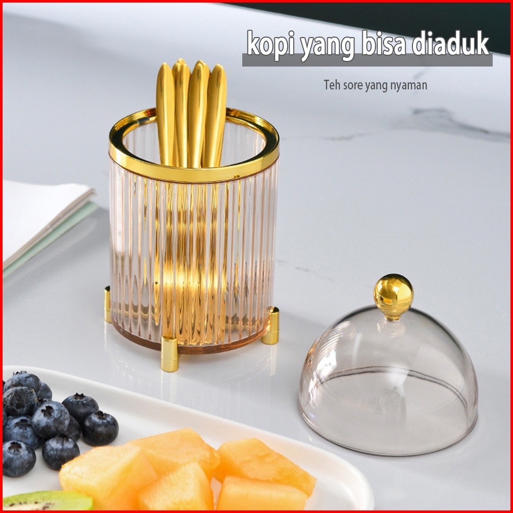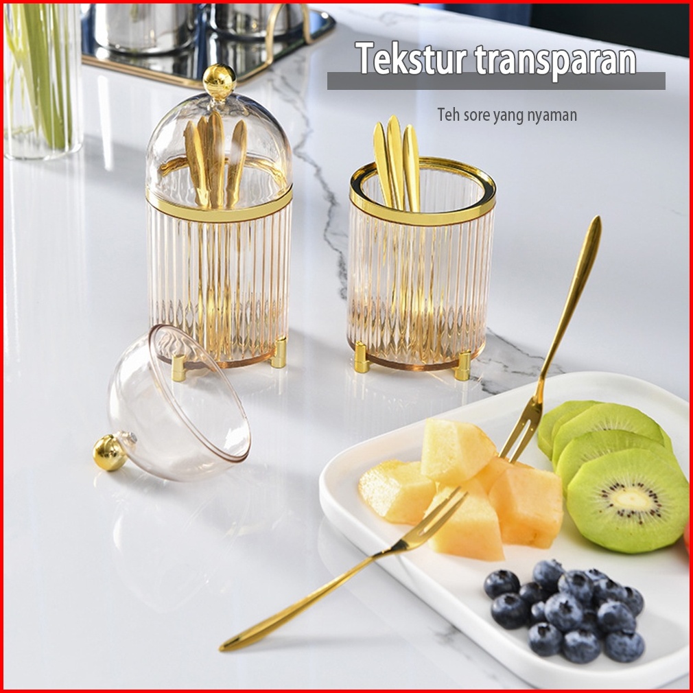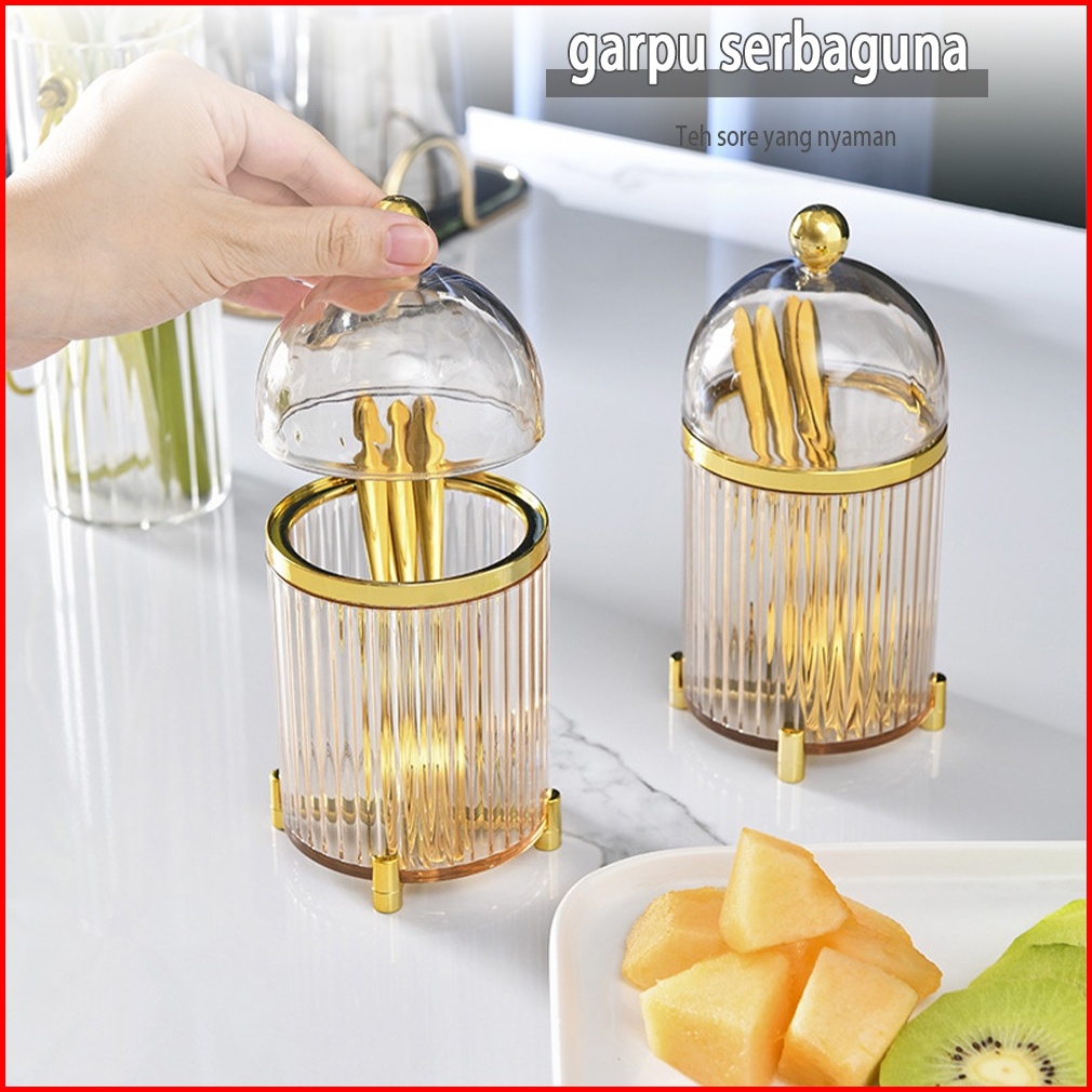Tempat Wadah Sendok Garpu Utensil Holder Set Dengan 10pc Fork Stainless Mewah