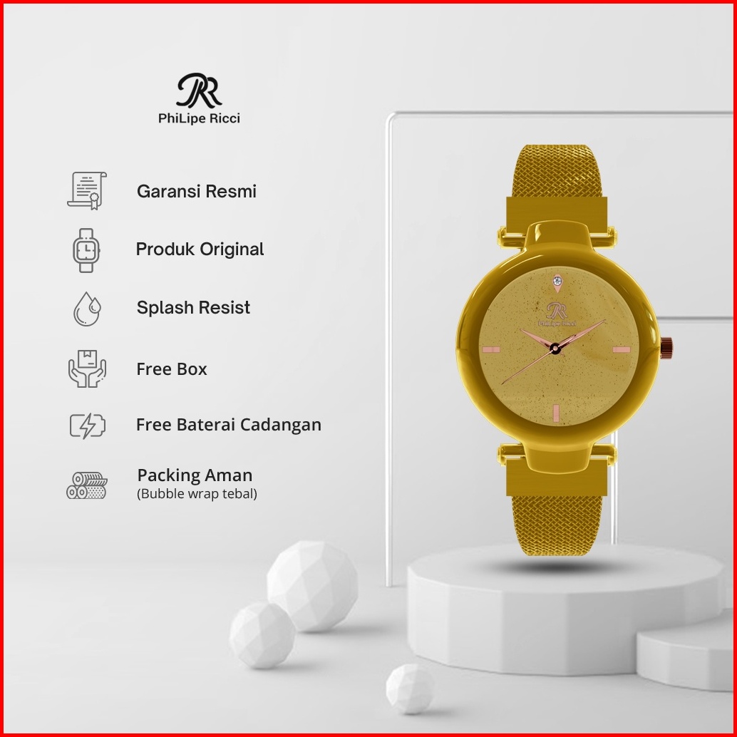 Philipe Ricci Jam Tangan Wanita Tali Magnet Analog Terbaru Quartz Free Box