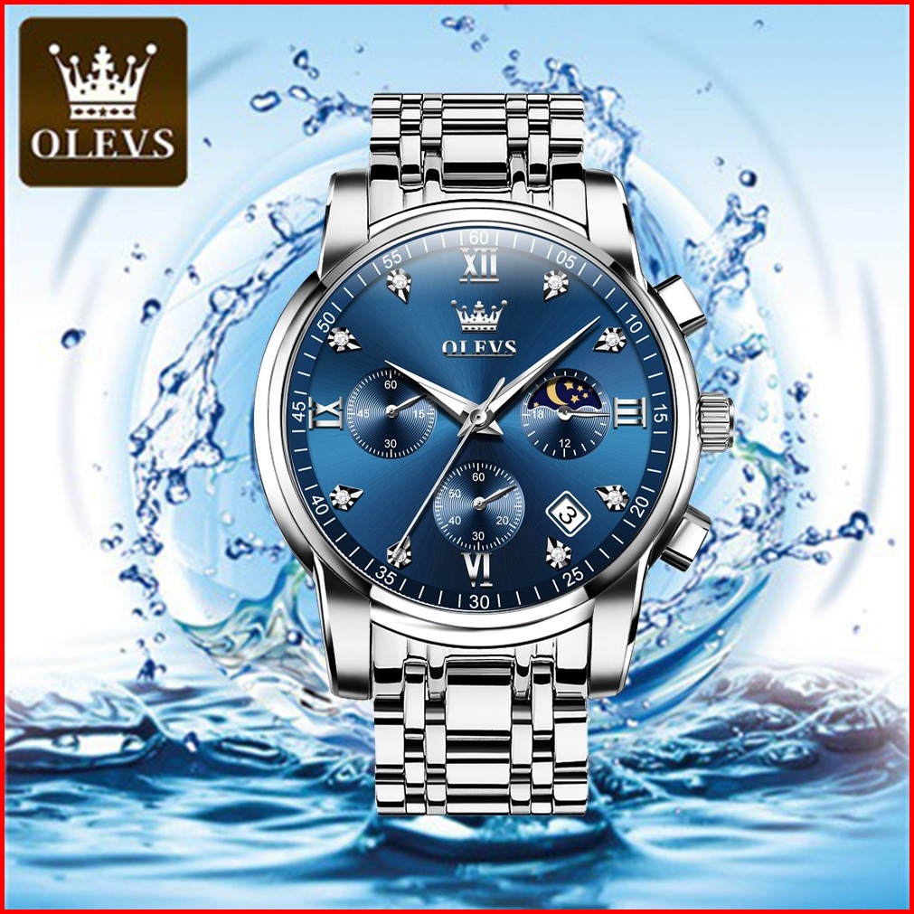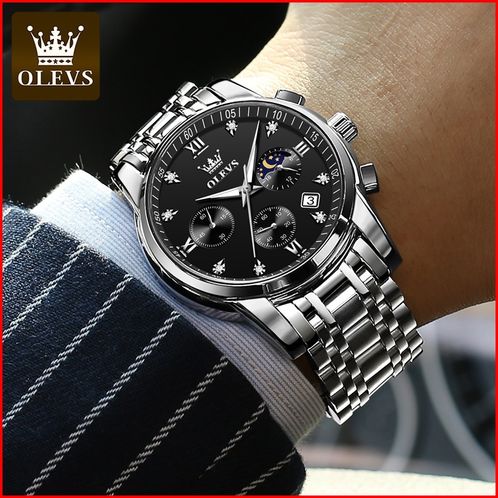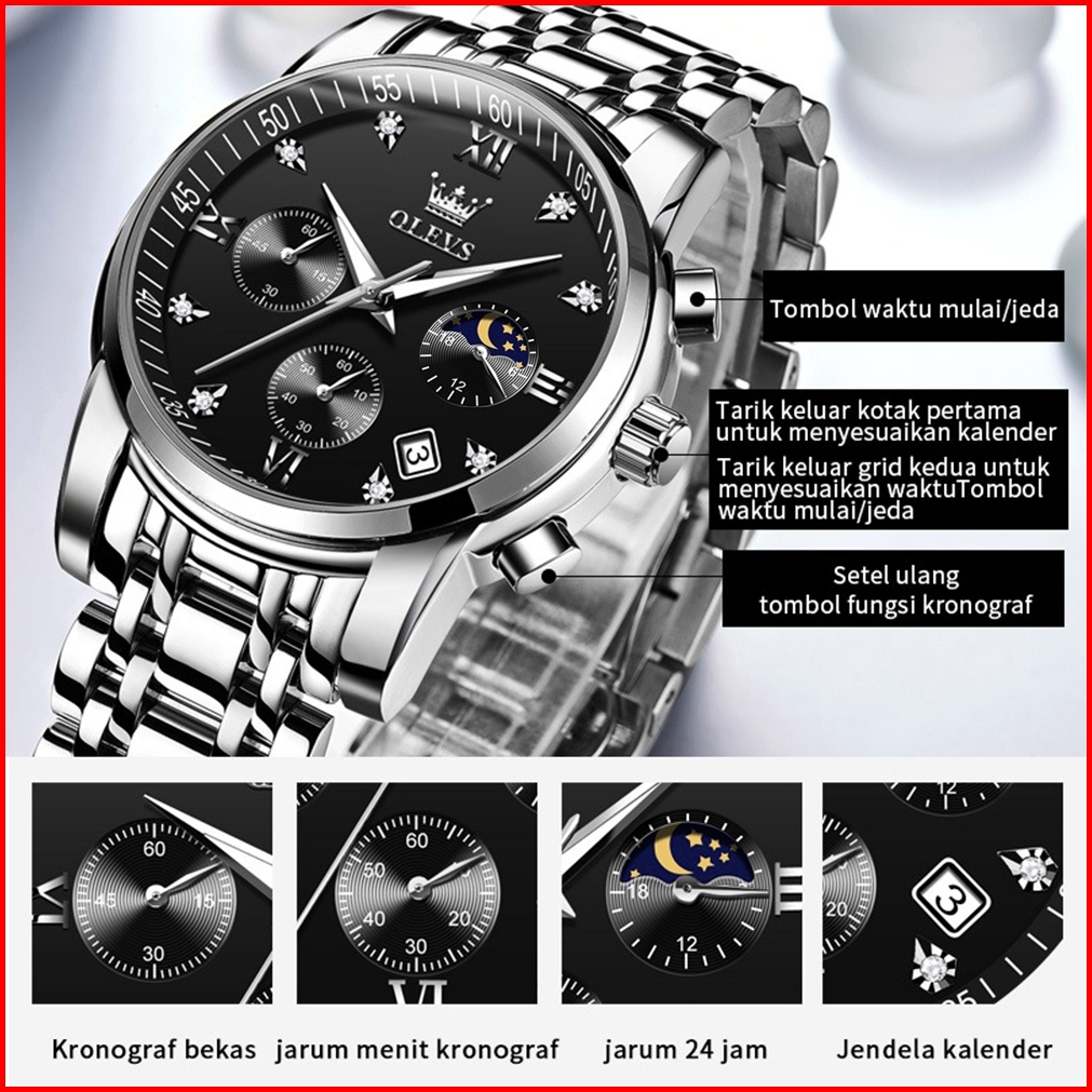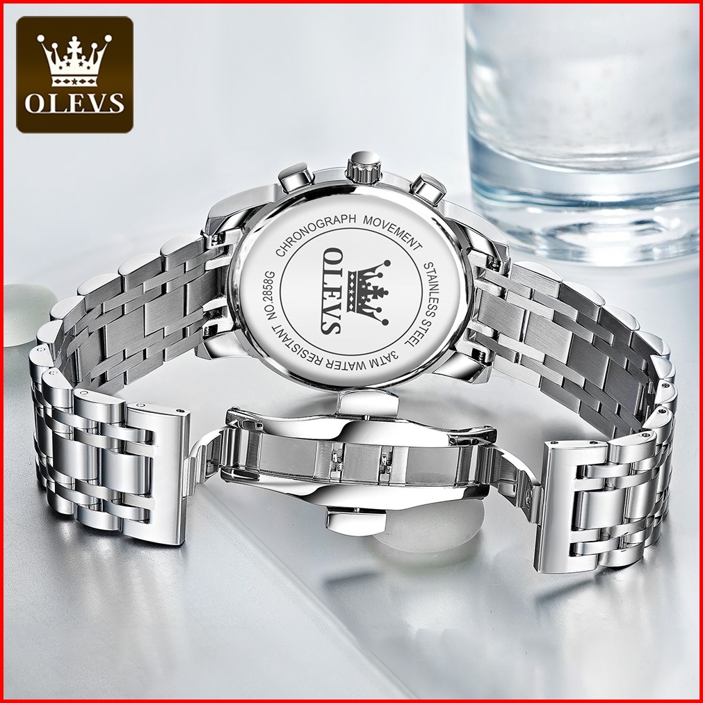 Olevs Jam Tangan Pria Anti Air Original Stainless Steel Chrono Aktif Cowok Luminous Kalender Analog Men Watch Mode 2858