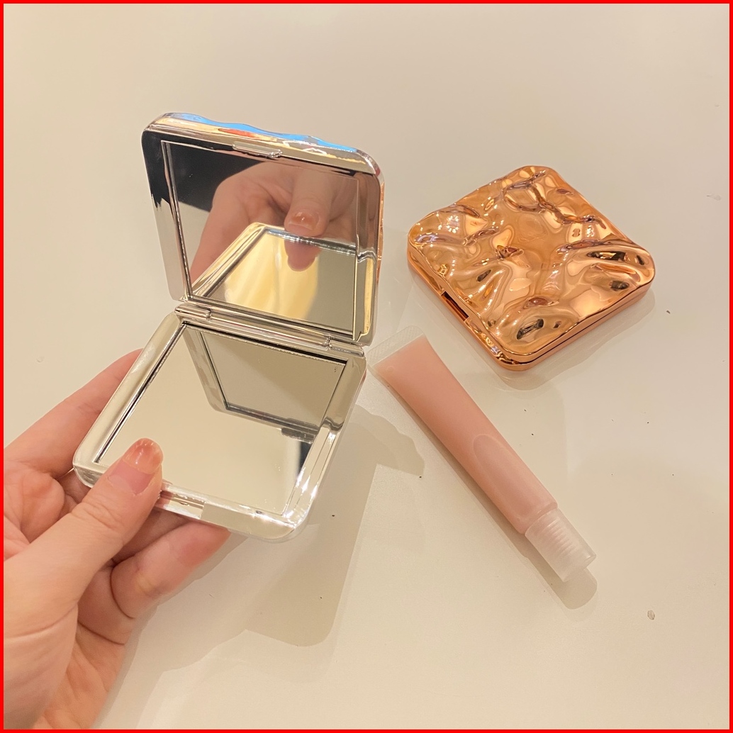Kini Mirae Cermin Kaca Make Up Portable Travel Friendly Bulat Kotak Genggam Lipat Hand Mirror Kecil Aesthetic