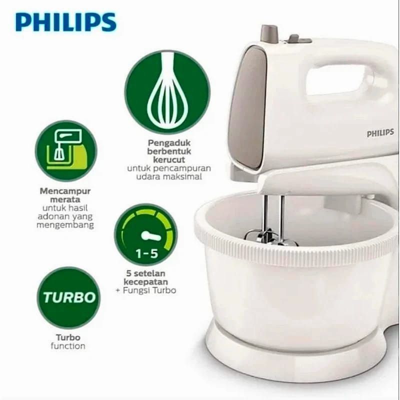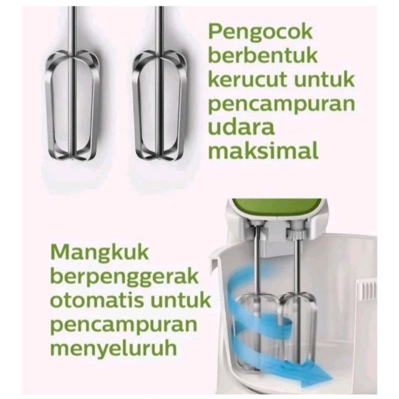 PHILIPS Stand Mixer HR1559/40 - 170 Watt Stand Mixer With Bowl,Pengocok Adonan Kue, Gree