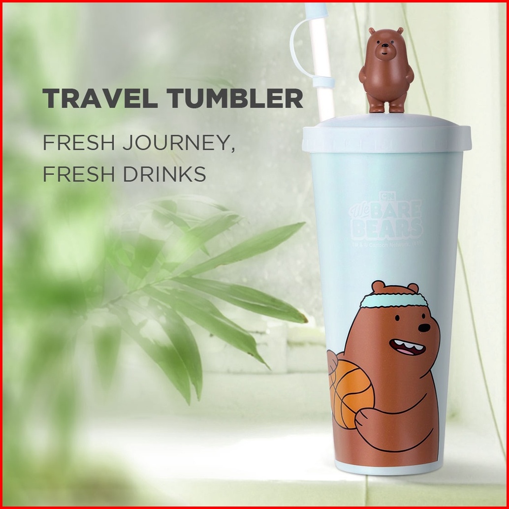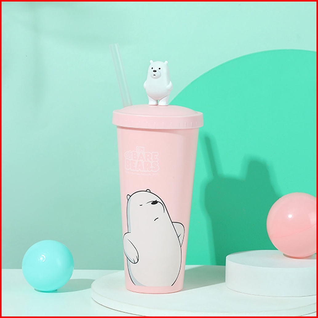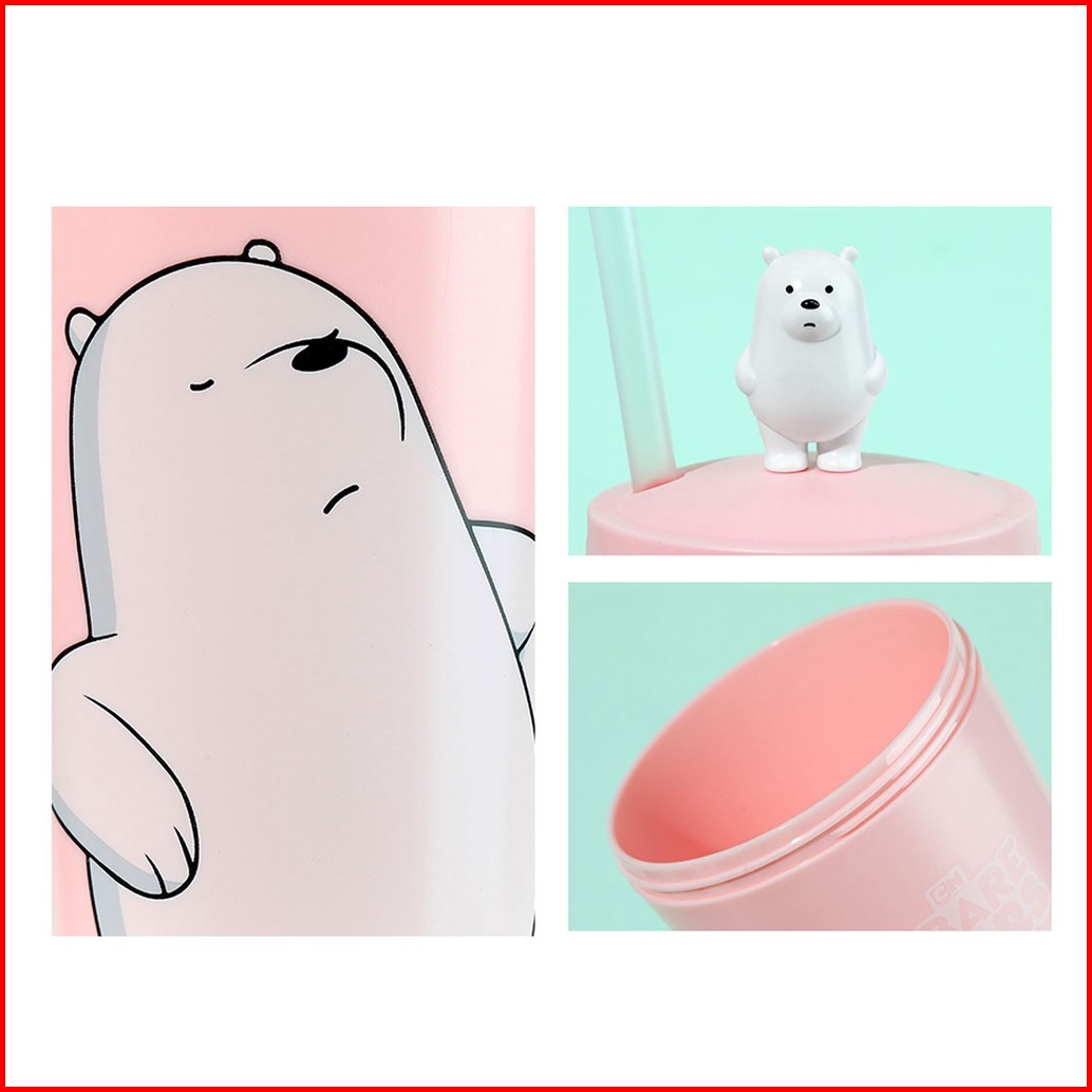 Miniso Botol Minum Lucu Motif Karakter Imut Dengan Sedotan Tempat Air Minum Sedotan Straw We Bare Bears Water Bottle Wad