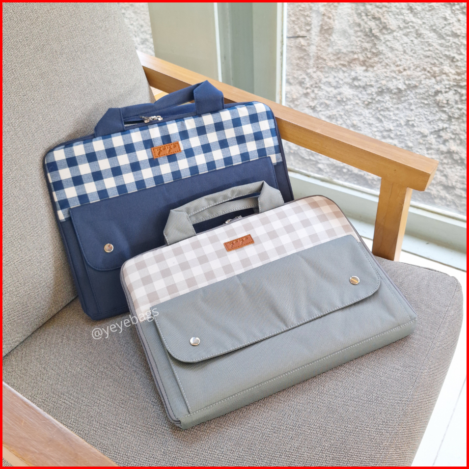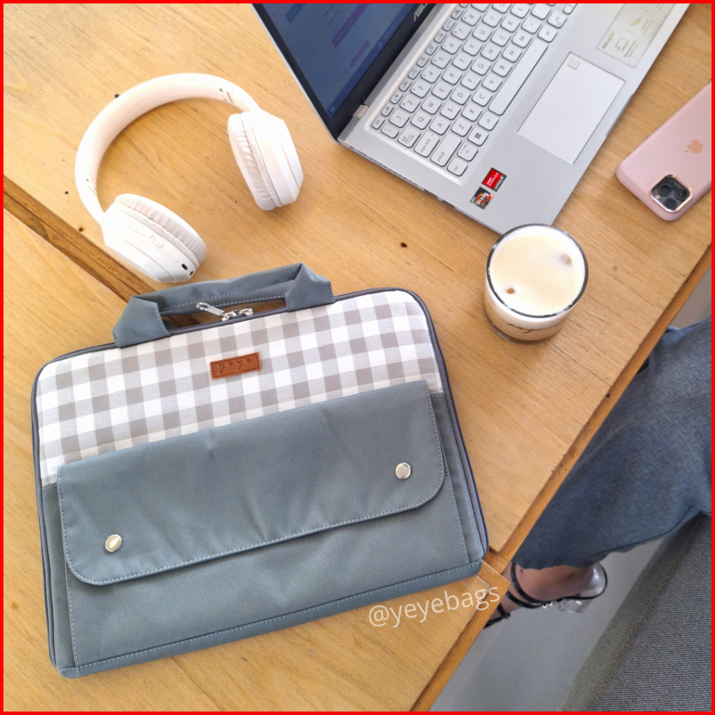 Yeyebags Tas Laptop 12 13 14 Inch Gingham Pattern Korean Laptop Case Jinjing Laptop Softcase