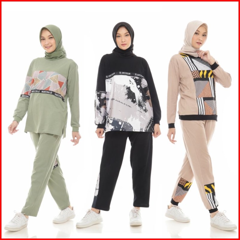 Setelan Olahraga Terbaru Wanita Jumbo Muslimah Kekinian Gowes Senam Joging